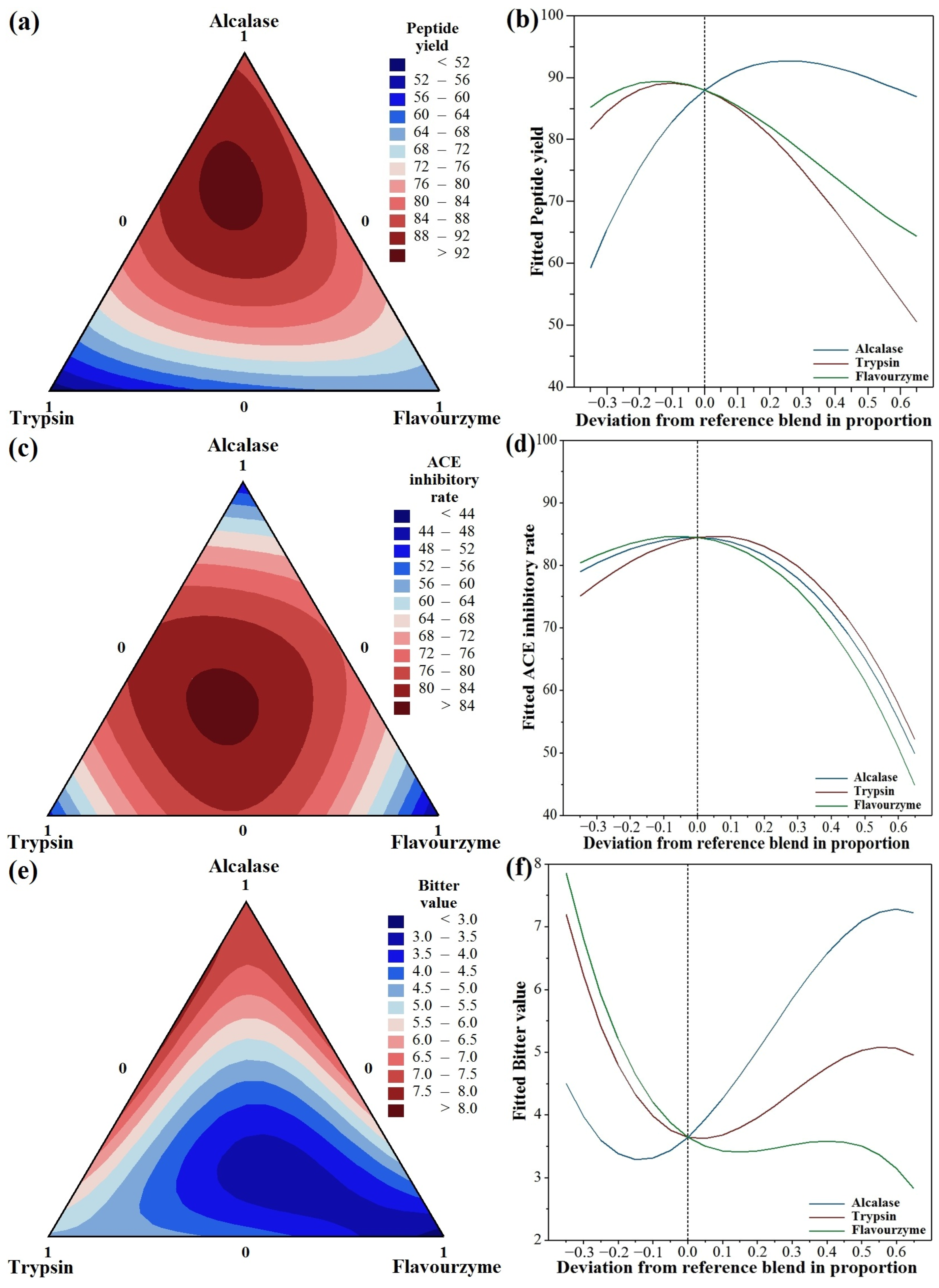 3.1. Analysis of Triple-Enzyme for Preparing Low-Bitter ACE-Inhibitory Peptides by Mixture Design