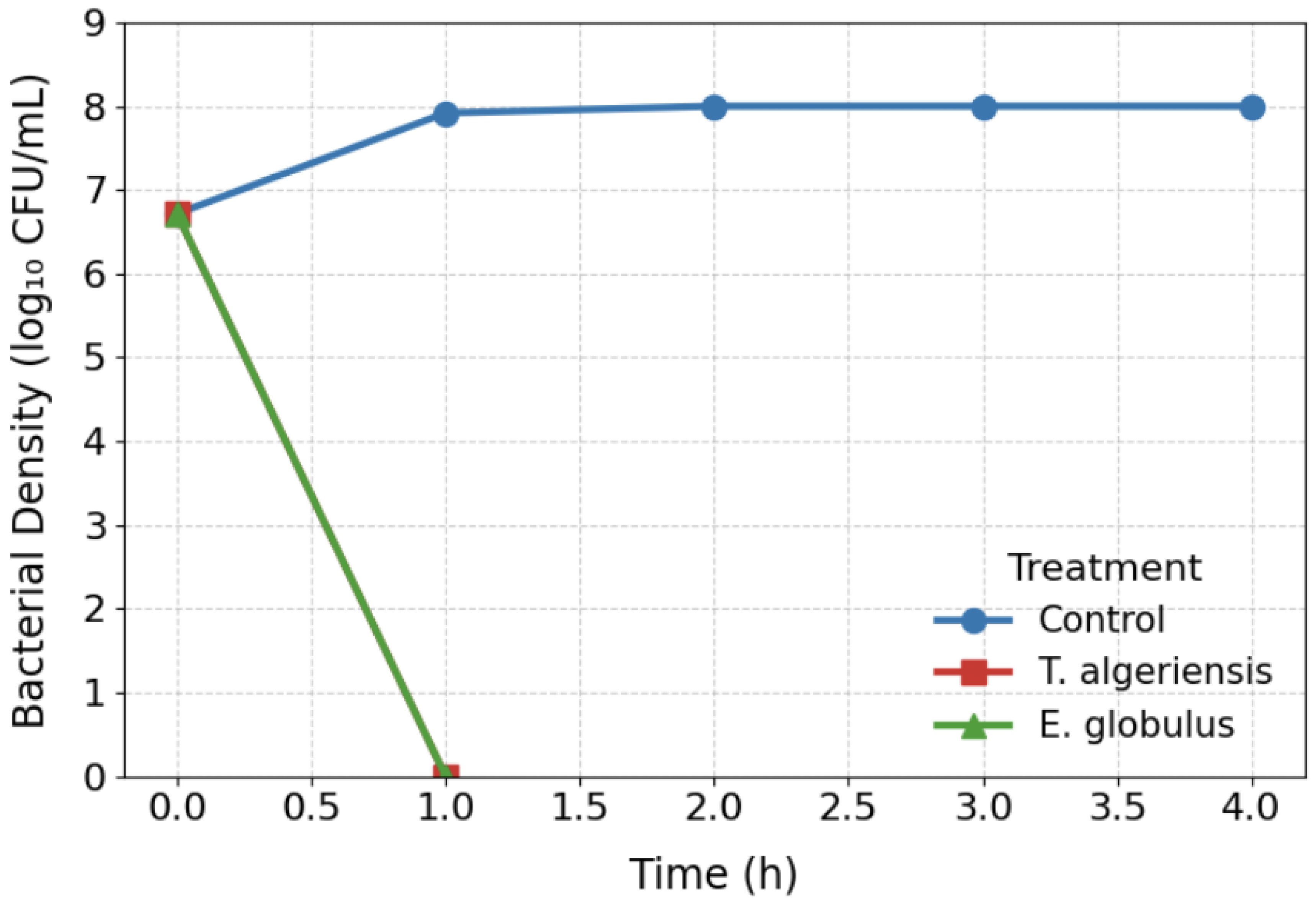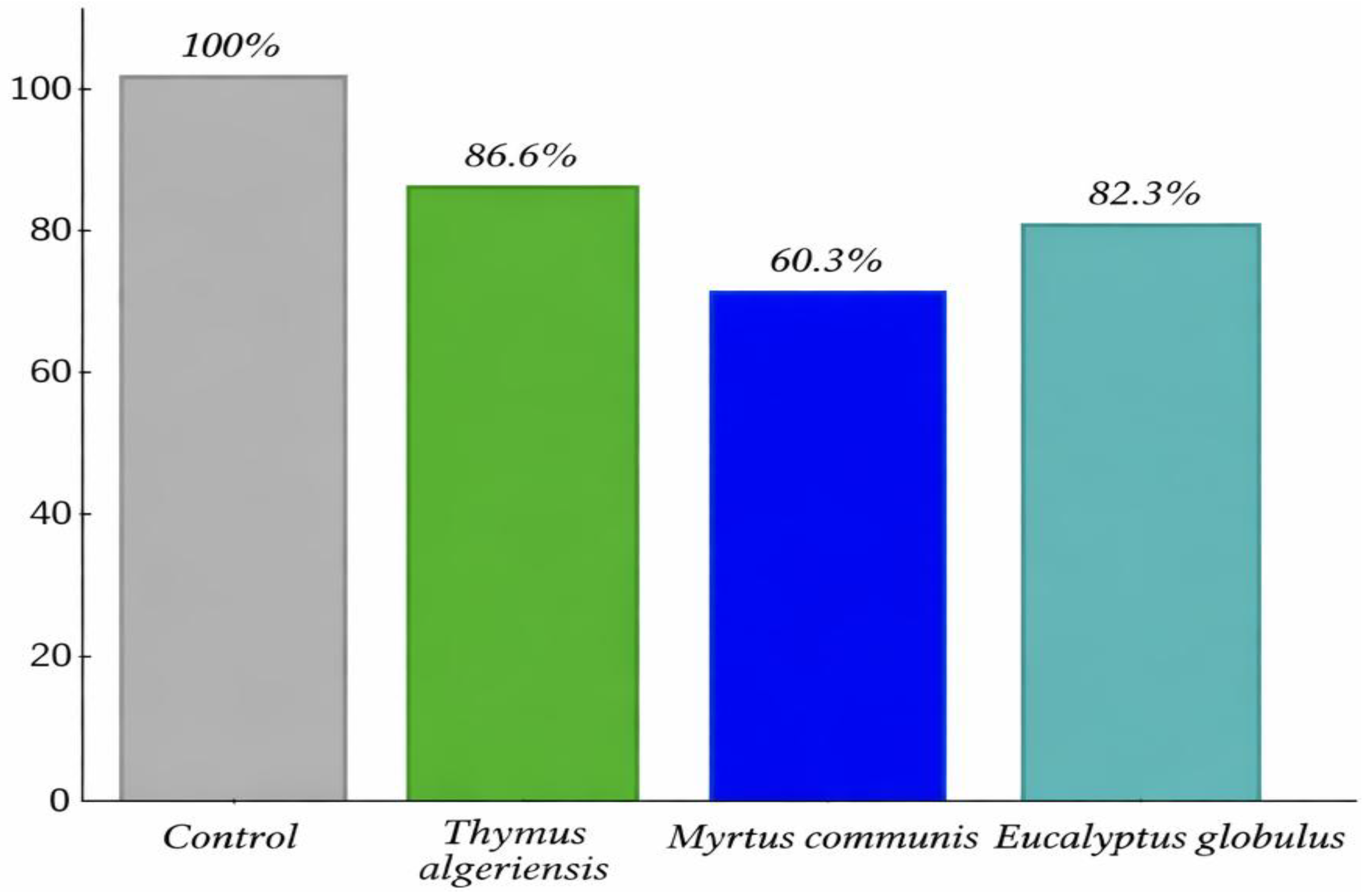 | E. globulus | T. capitatus | T. algeriensis | M. communis | A. absinthium | M. pulegium | |