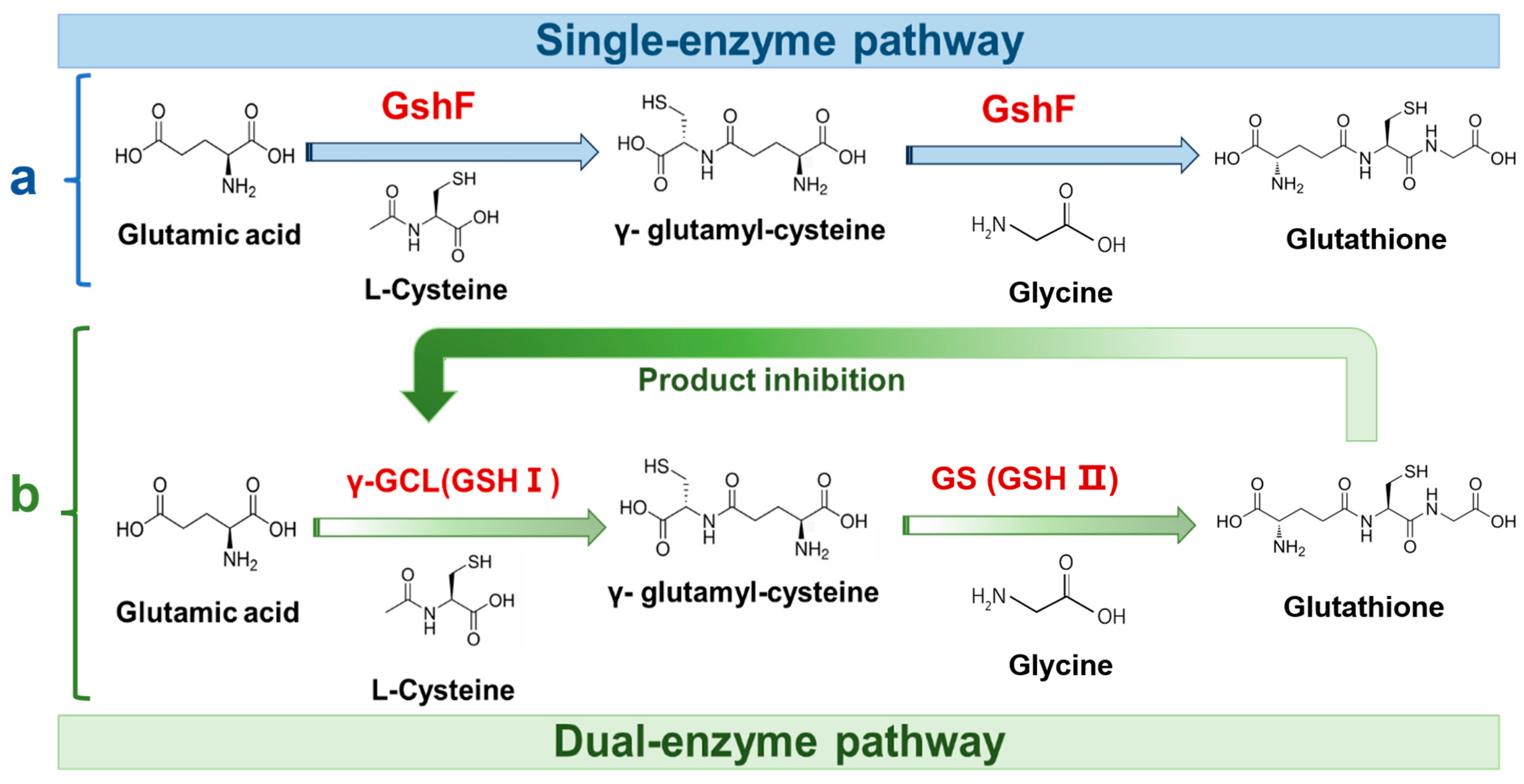 - Cui, X.; Li, Z. High production of glutathione by in vitro enzymatic cascade after thermostability enhancement. AIChE J. 2021, 67, e17055. [Google Scholar] [CrossRef]
