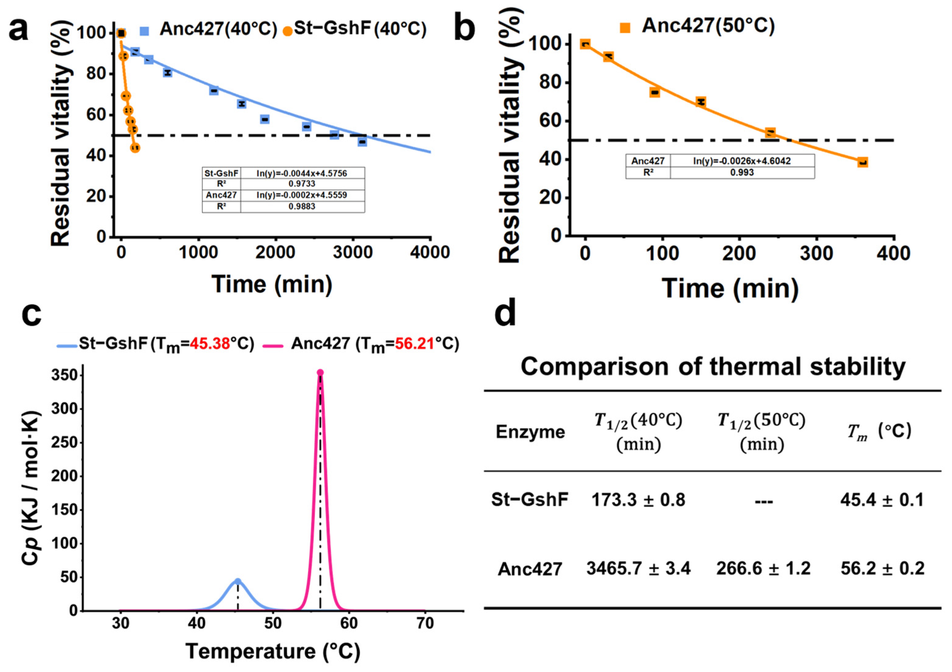 3.4. Thermostability of the Ancestral Enzyme and Probe Enzymes
