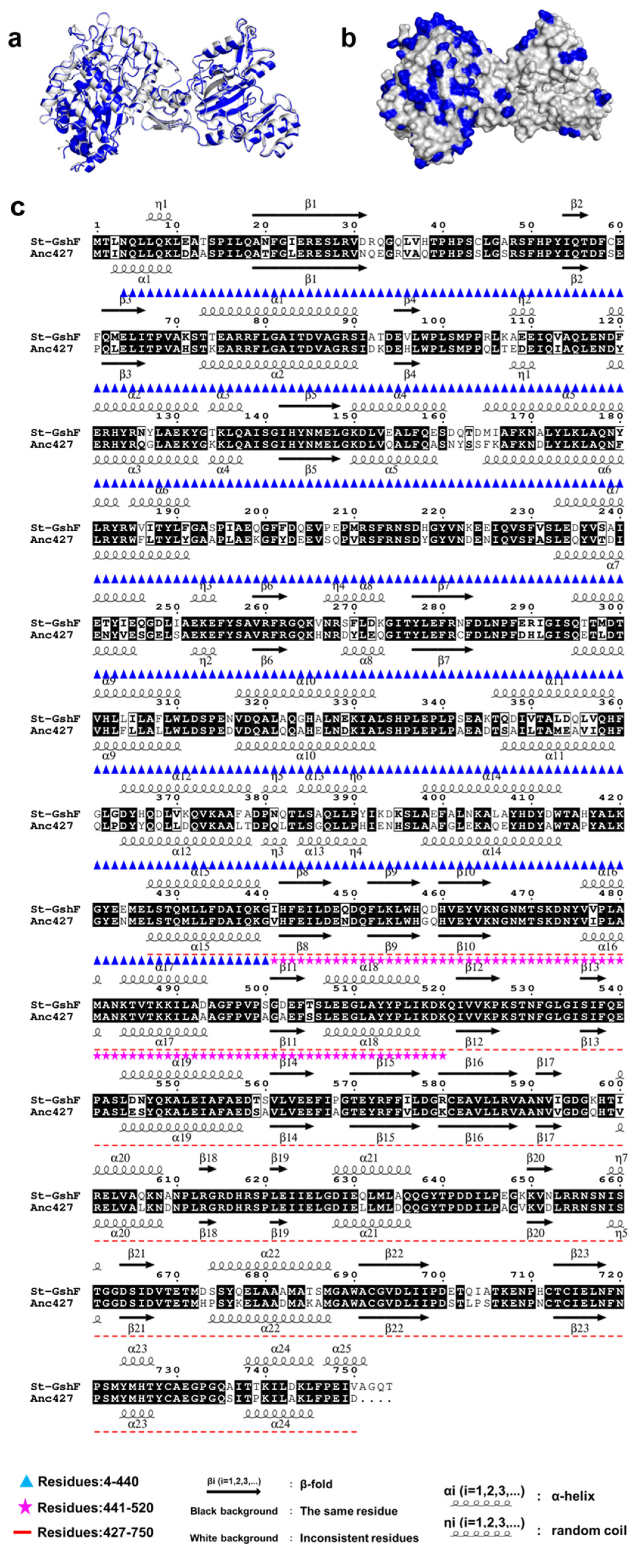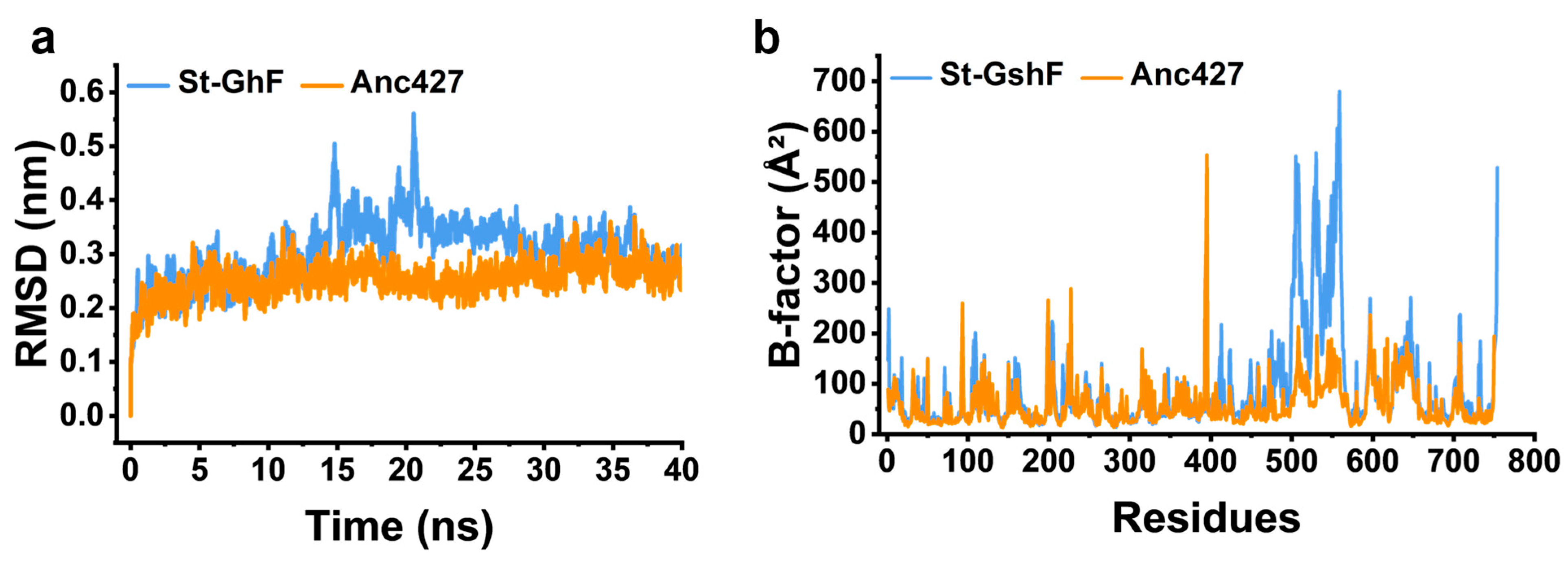 - Zhu, W.; Sun, H.; Jiang, Q.; Zheng, R.; Wang, Q.; Zhang, Q.; Liu, L.; Cao, H. Enhancing the thermal stability of glutathione bifunctional synthase by b-factor strategy and un/folding free energy calculation. Catalysts 2022, 12, 1649. [Google Scholar] [CrossRef]