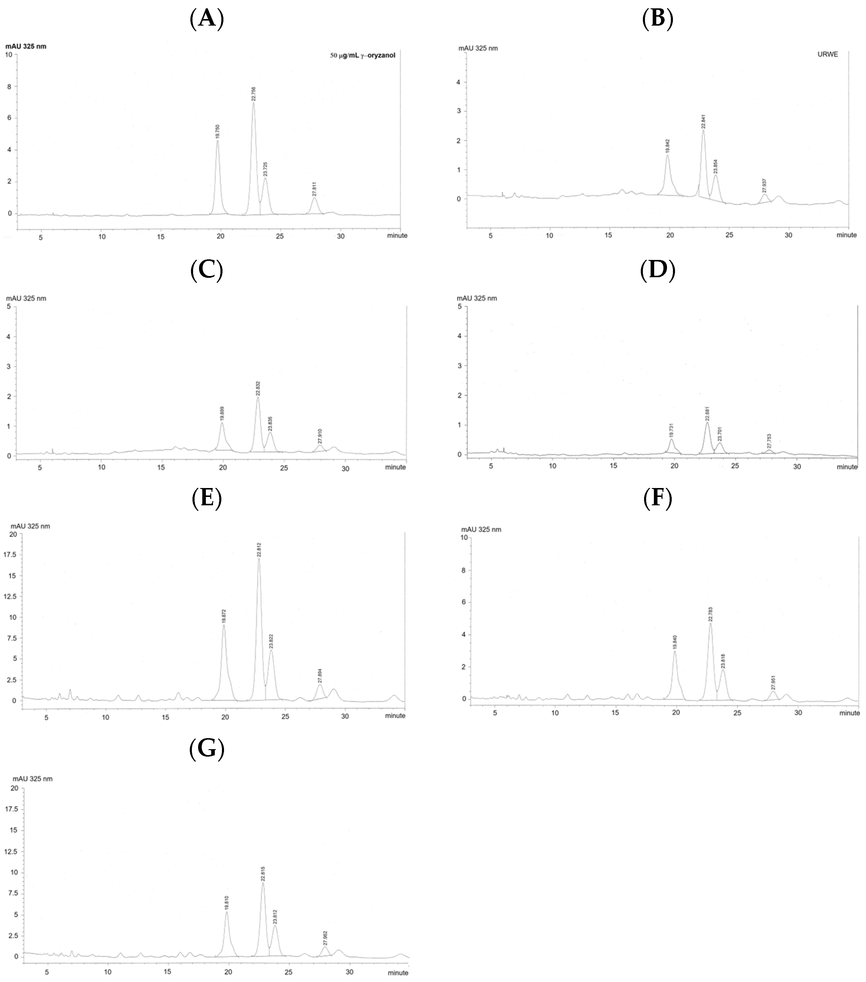 2.6. HPLC-DAD Analysis of Total γ-Oryzanol