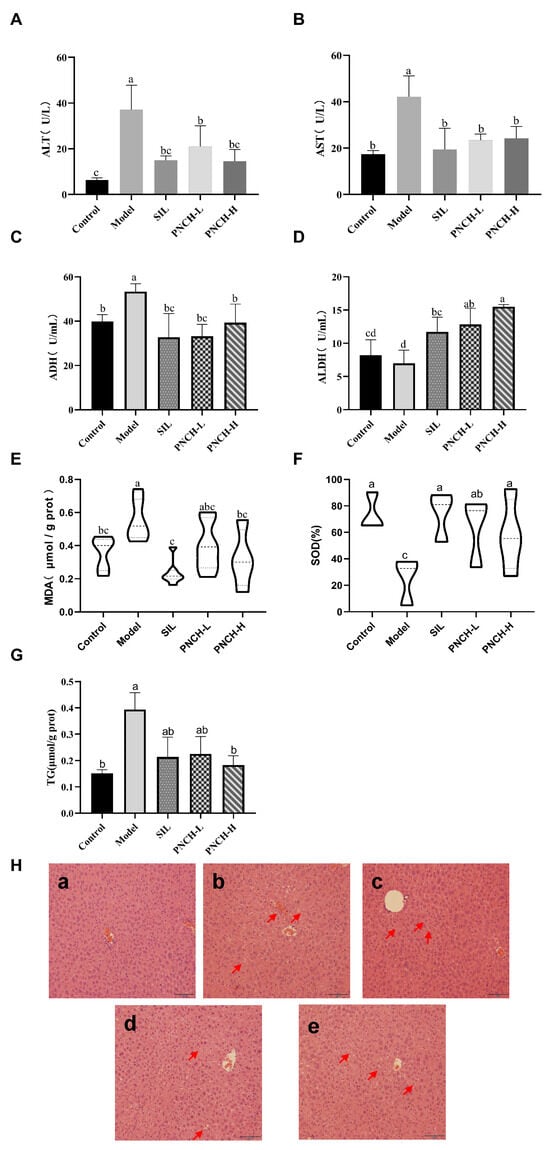 3.4. Evaluation of PNCH to Alleviate Acute Alcoholic Liver Injury in Mice