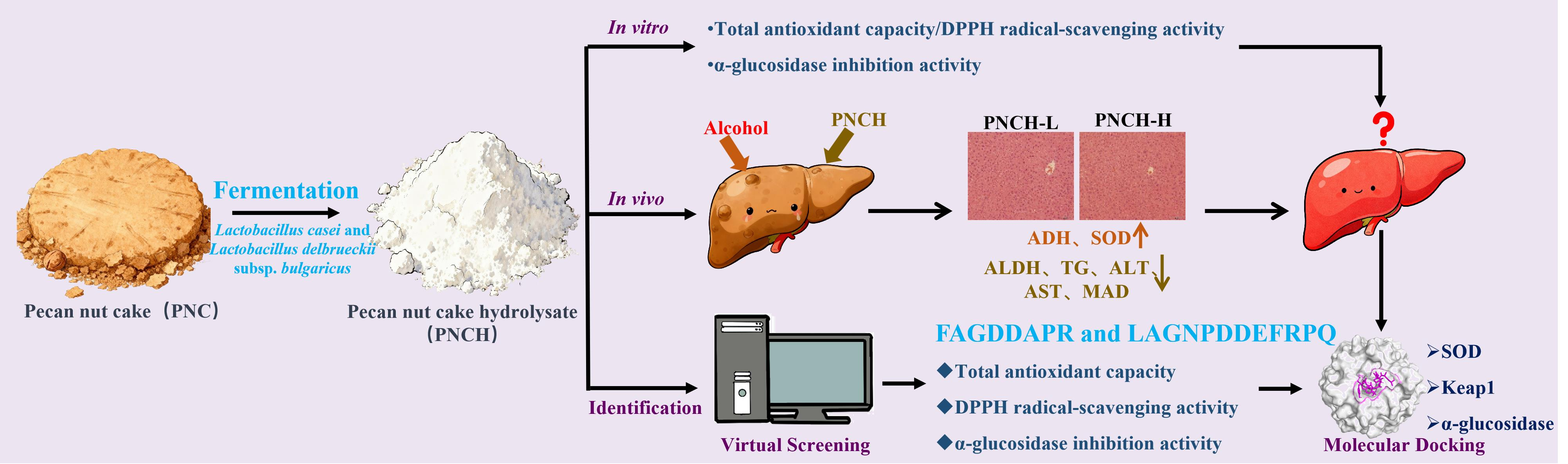 Chicago/Turabian StyleLong, Tianjing, Yingjie Xu, Ziang Li, Weimei Kong, Yibo Zhu, Mingxuan Tao, Haibo Luo, Li Cui, Mingjun Sun, Zhen Wu, and et al. 2026. "Unlocking the Functional Potential of Pecan Nut Cake: A Study on Bioactive Peptide Production" Foods 15, no. 2: 323. https://doi.org/10.3390/foods15020323