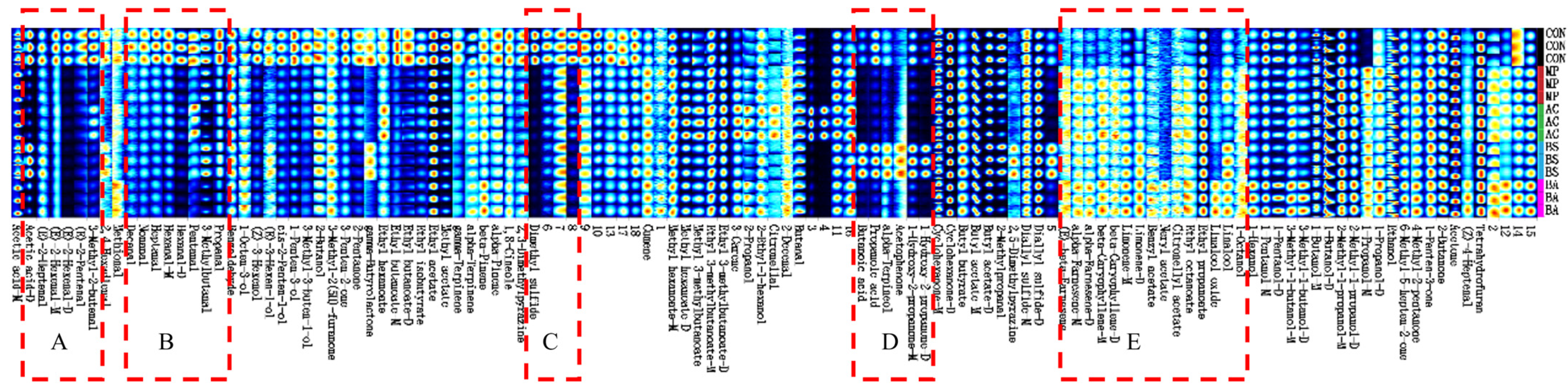 2.2. Electronic Nose Analysis