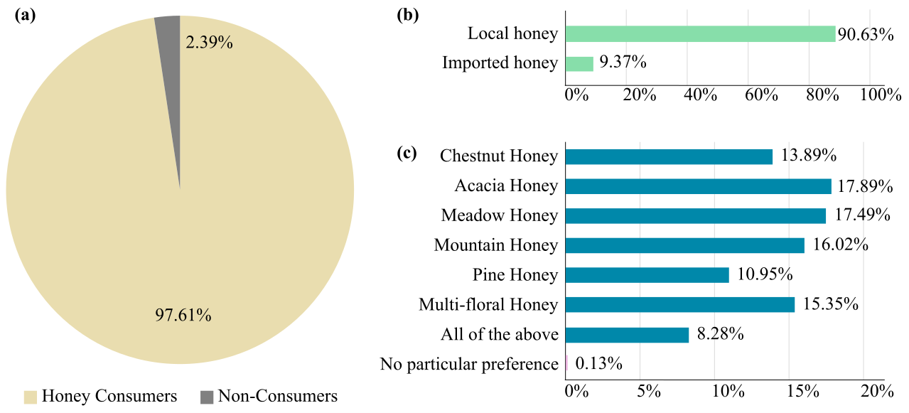 Figure 1b), underscoring a high level of trust in domestic producers and a strong inclination toward locally sourced products. Participants associated local honey with freshness, perceived quality, and authenticity. This preference is further reinforced by the fact that many consumers reported using traditional methods to verify authenticity, including visual inspection, taste testing, heat exposure, and topical application.