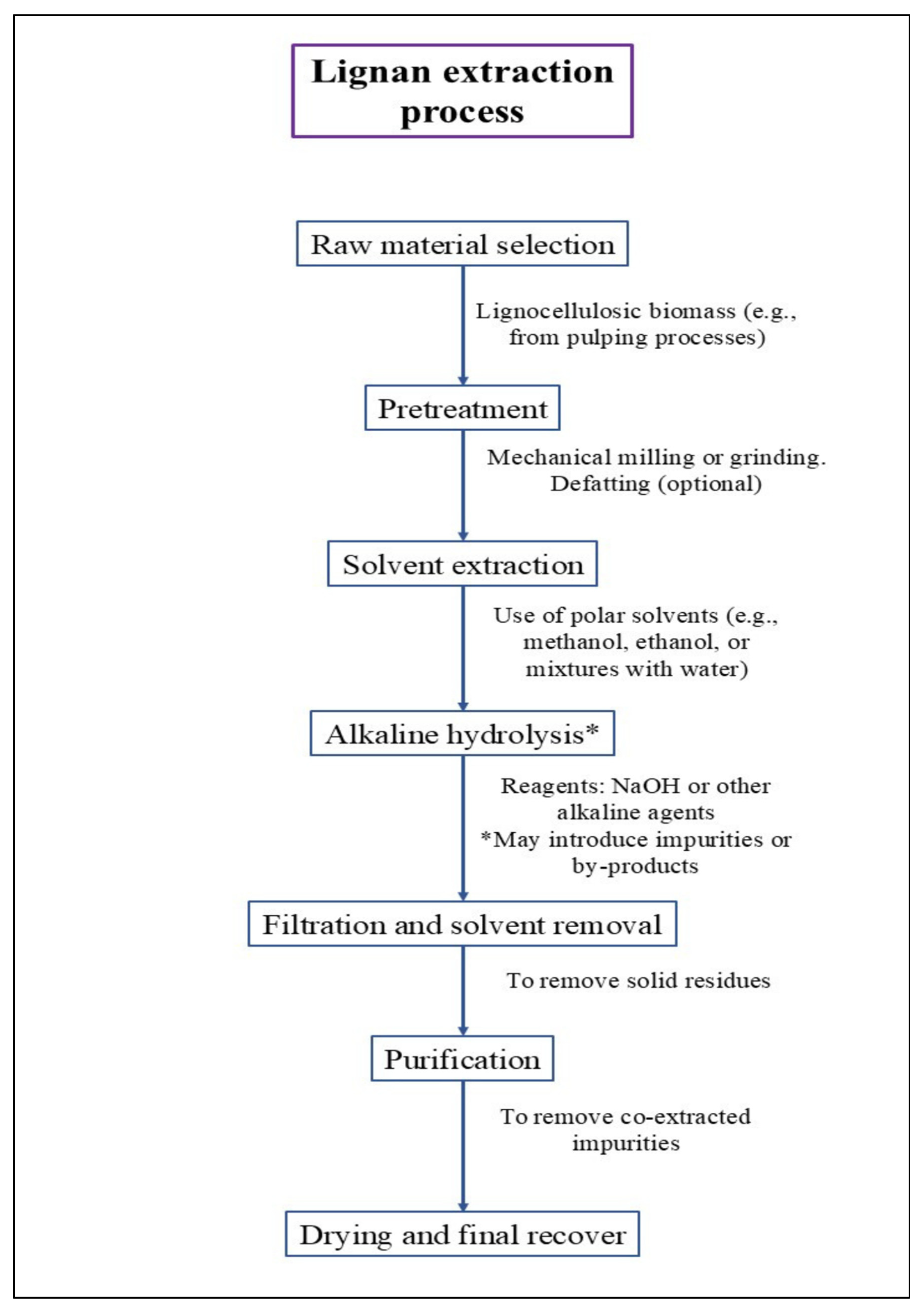 - Yang, Y.-t.; Zhang, Y.; Bian, Y.; Zhu, J.; Feng, X.-S. Trends in extraction and purification methods of Lignans in plant-derived foods. Food Chem. X 2025, 26, 102249. [Google Scholar] [CrossRef]