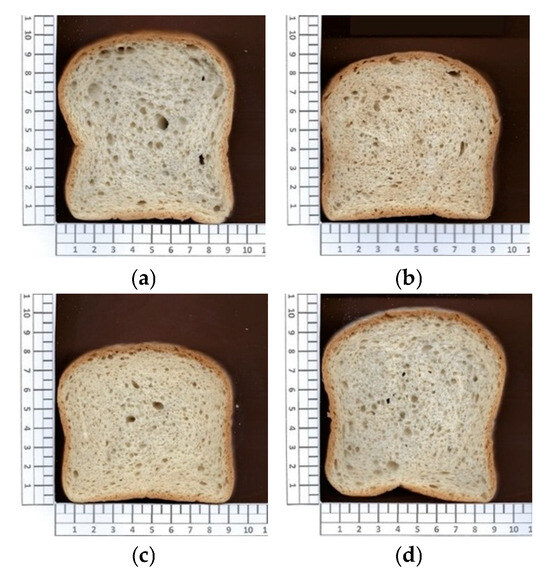 Digital images of 10 mm thick bread slices were acquired using an Epson SX420 scanner (Seiko Epson Corporation, Tokyo, Japan). Image contrast and brightness were adjusted to +50% and +80%, respectively, using Windows Photo Viewer software (Windows 11). Subsequently, the images were processed and analyzed using ImageJ software (version 1.41; NIH, Bethesda, MD, USA).