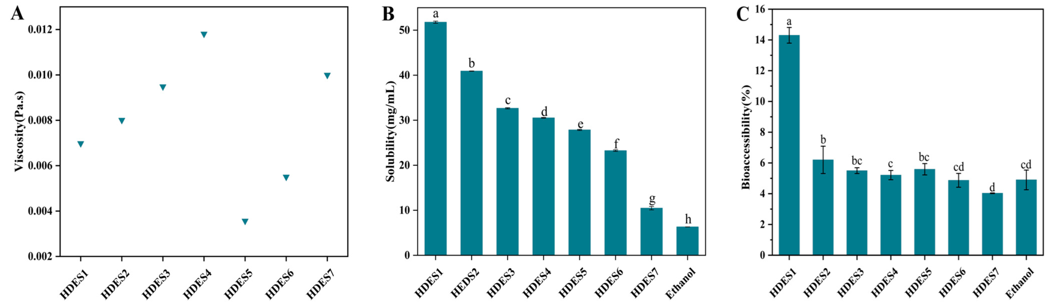 3.1. The Influence of HDESs on the Bioaccessibility of OA and Its Physical Property Basis