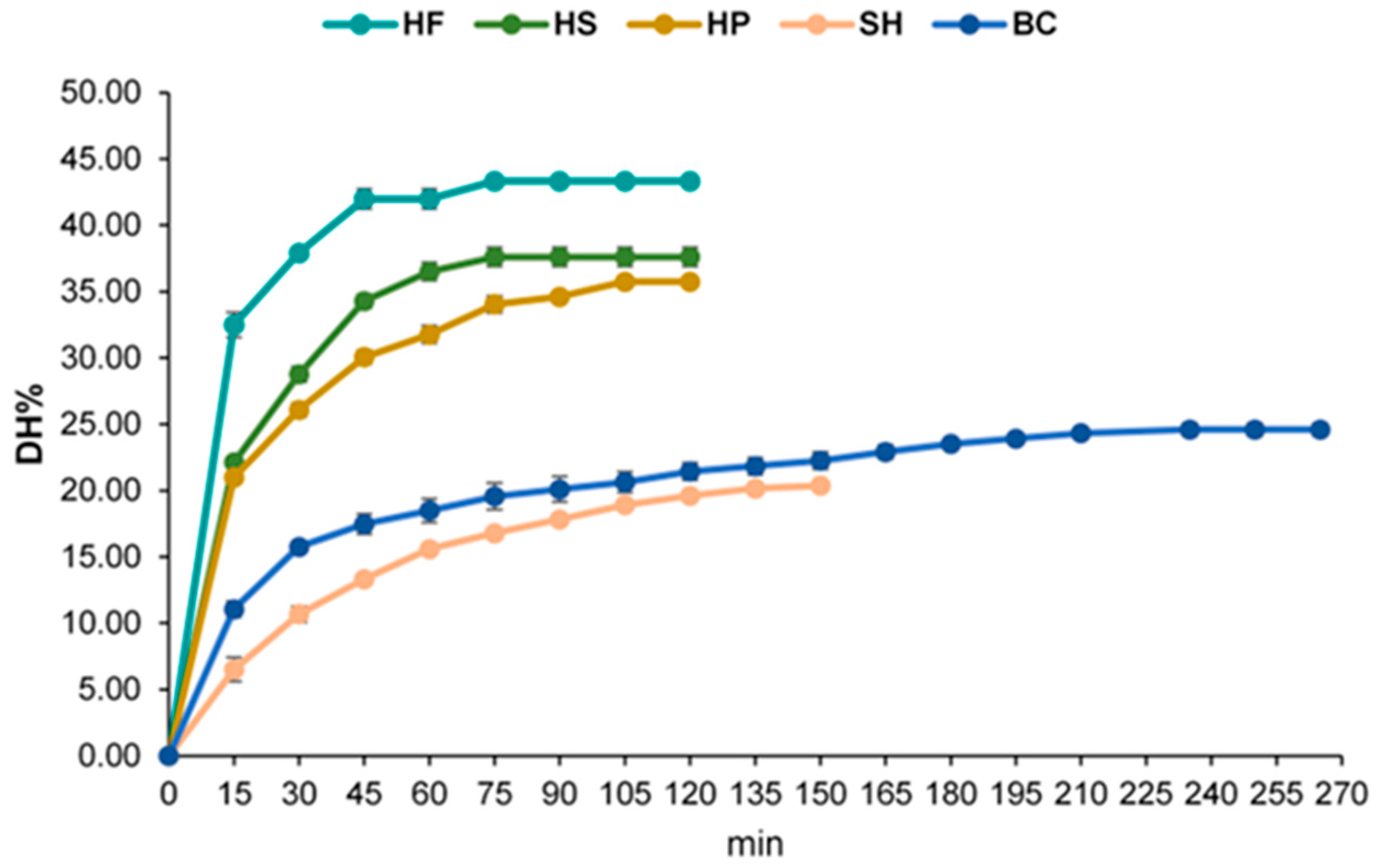 3.1. Production of Plant- and Animal-Derived Hydrolysates and Antioxidant Activities