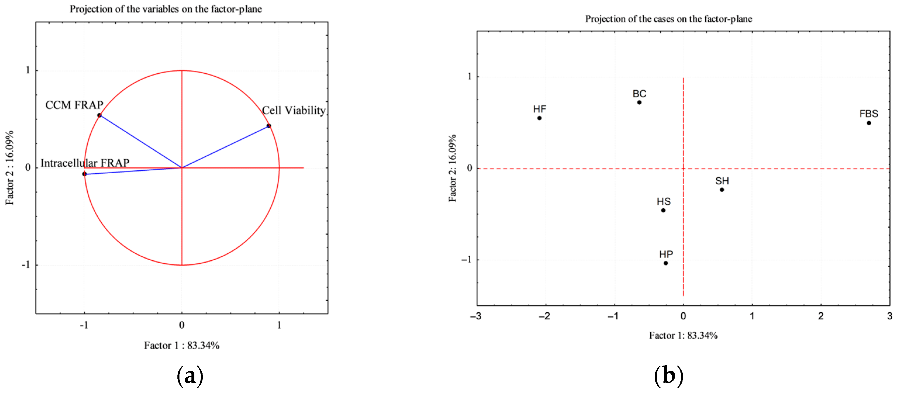 2.2.7. Determination of Antioxidant Activity in Exhausted Cell Culture Media and Cell Biomass