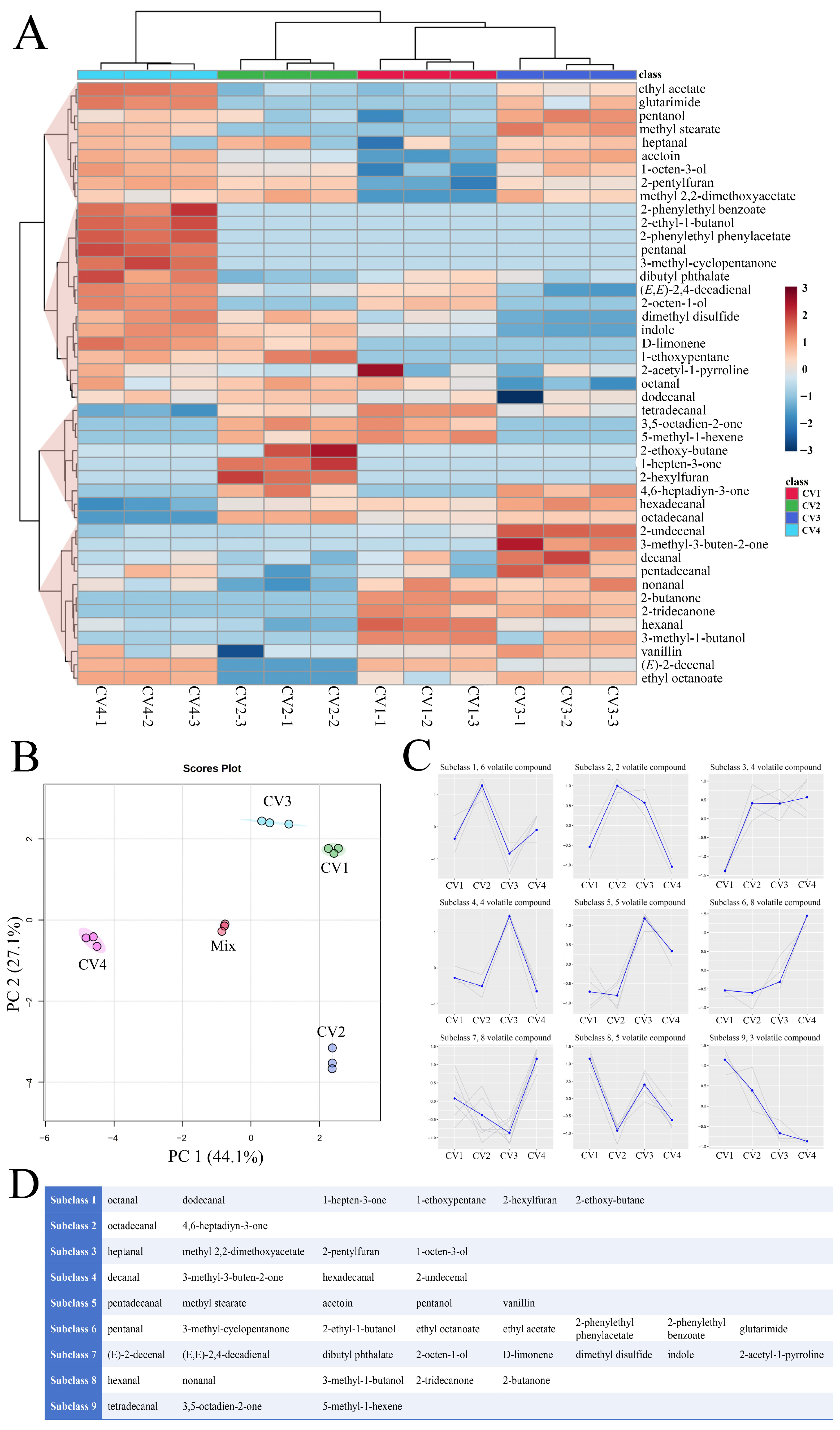 3.2.1. Identification of Volatile Compounds