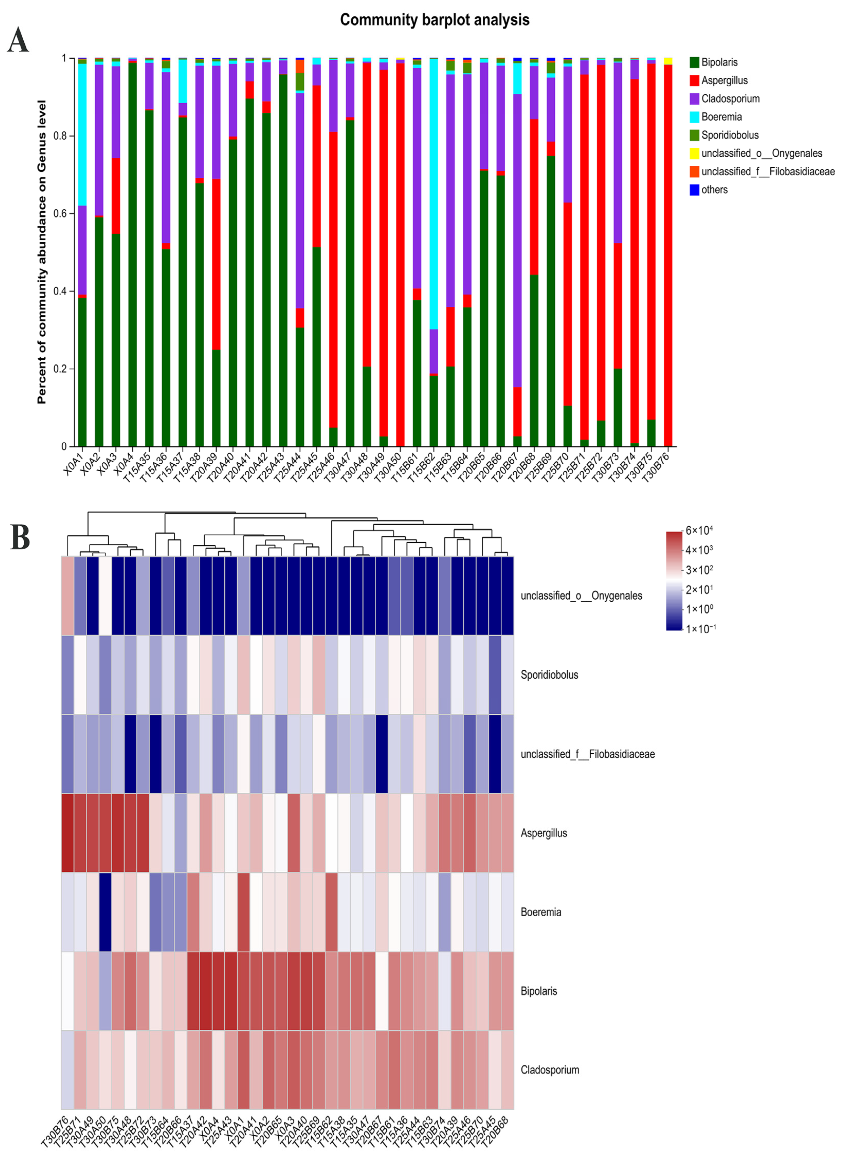 - Wang, R.; Li, M.; Jin, R.; Liu, Y.; Guan, E.; Mohamed, S.R.; Bian, K. Analysis of wheat fungal community succession in traditional storage structures using Illumina MiSeq sequencing technology. Int. J. Food Microbiol. 2024, 425, 110876. [Google Scholar] [CrossRef]