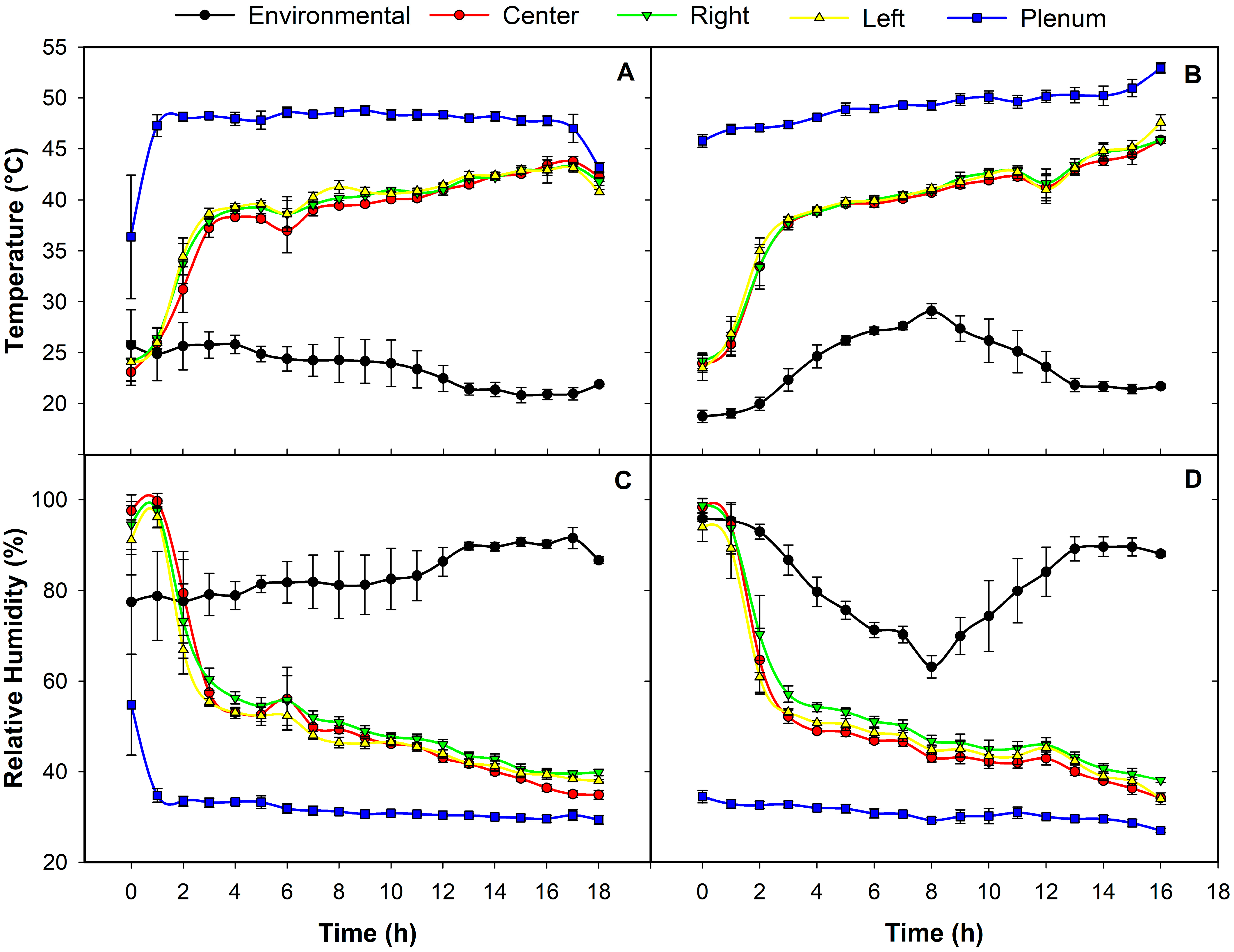| T | Temperature (°C) | Air heating energy (kJ h−1) | |