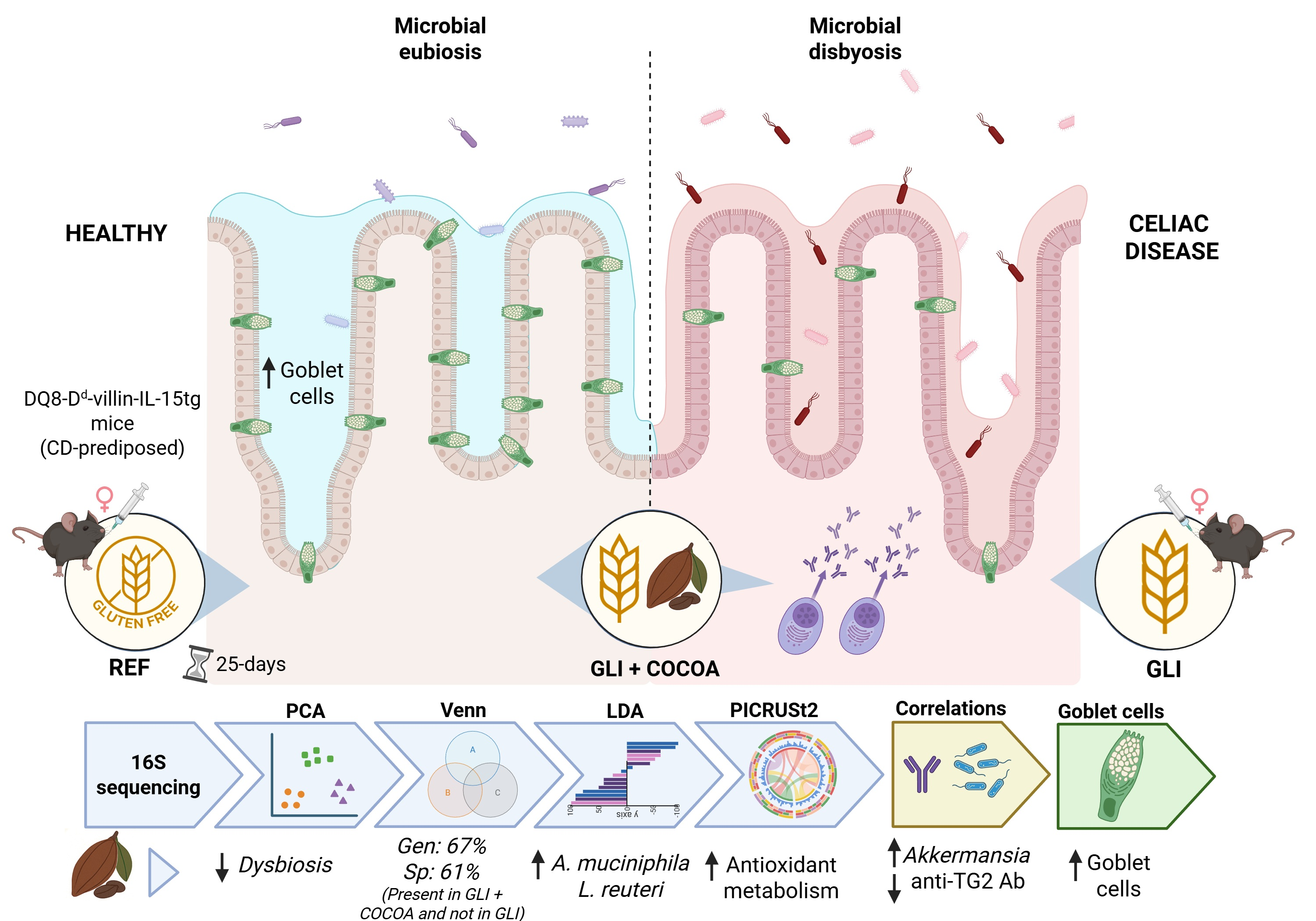 Girbal-González M, Rodríguez-Lagunas MJ, Rodríguez-Banqueri A, Eckhard U, Gomis-Rüth FX, Franch-Masferrer À, Pérez-Cano FJ. Cocoa Supplementation Alleviates Gliadin-Induced Intestinal Dysbiosis in a Mouse Model of Celiac Disease. Foods. 2026; 15(2):370. https://doi.org/10.3390/foods15020370