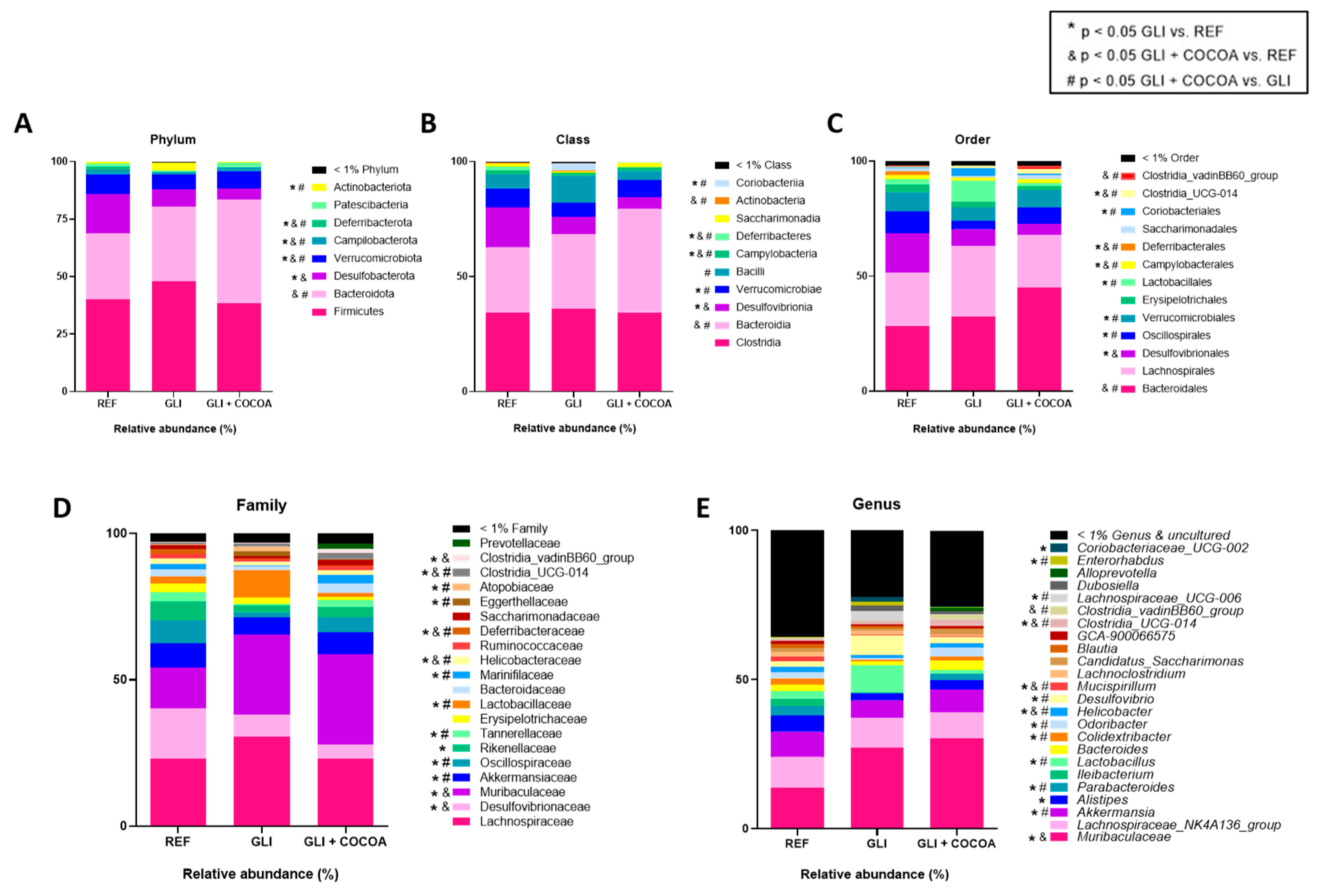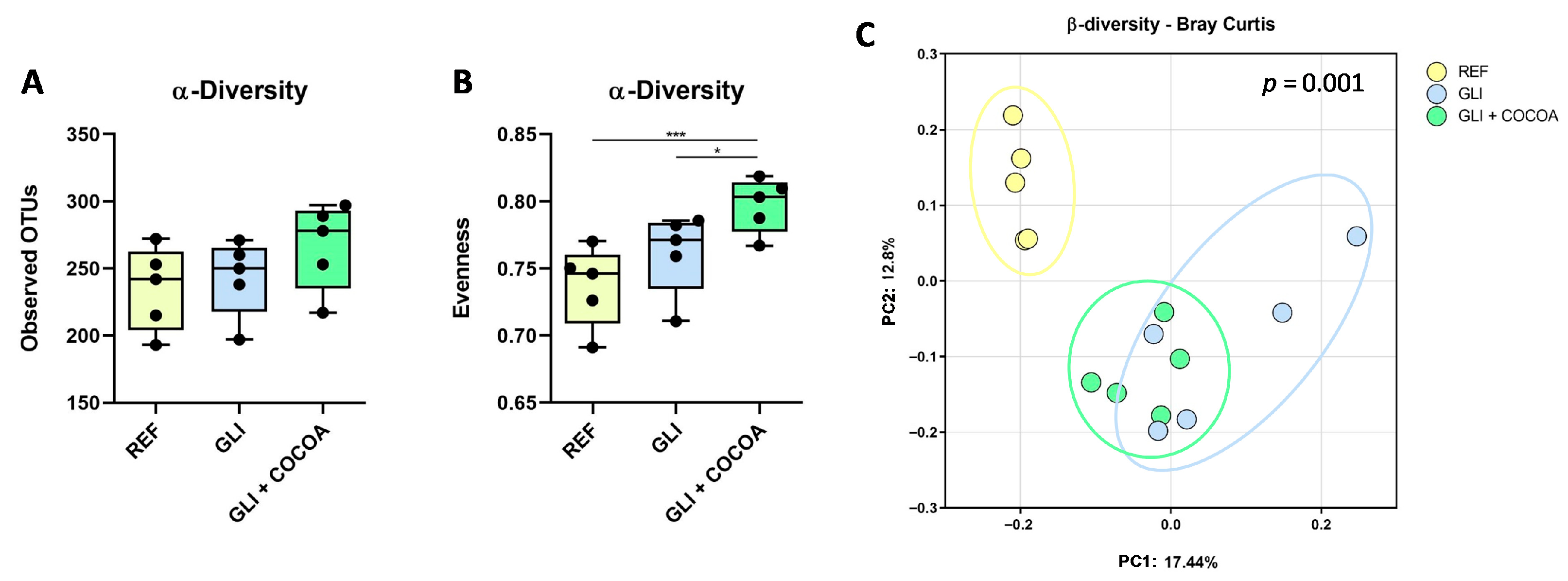 APA StyleGirbal-González, M., Rodríguez-Lagunas, M. J., Rodríguez-Banqueri, A., Eckhard, U., Gomis-Rüth, F. X., Franch-Masferrer, À., & Pérez-Cano, F. J. (2026). Cocoa Supplementation Alleviates Gliadin-Induced Intestinal Dysbiosis in a Mouse Model of Celiac Disease. Foods, 15(2), 370. https://doi.org/10.3390/foods15020370