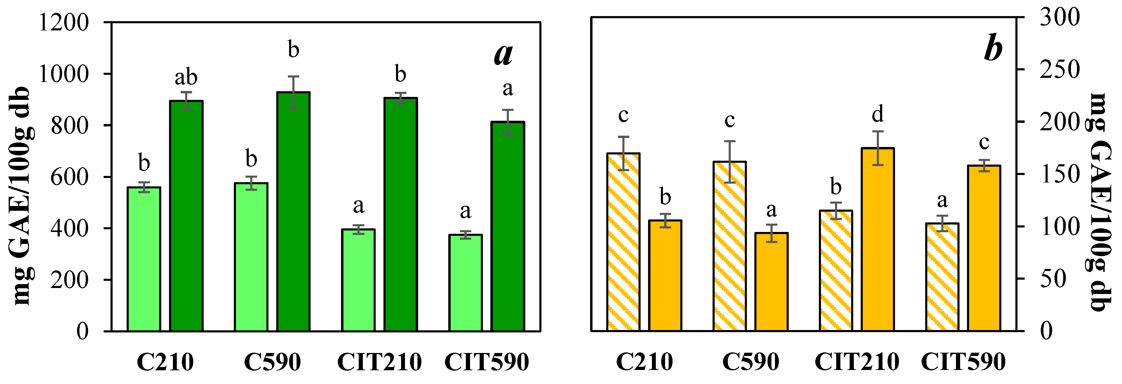 | Phenolic Family | Polyphenol | C210 | C590 | CIT210 | CIT590 |