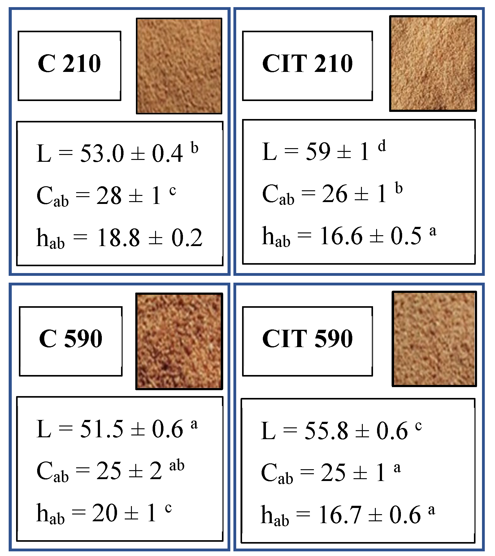 | Properties | C210 | C590 | CIT210 | CIT590 |