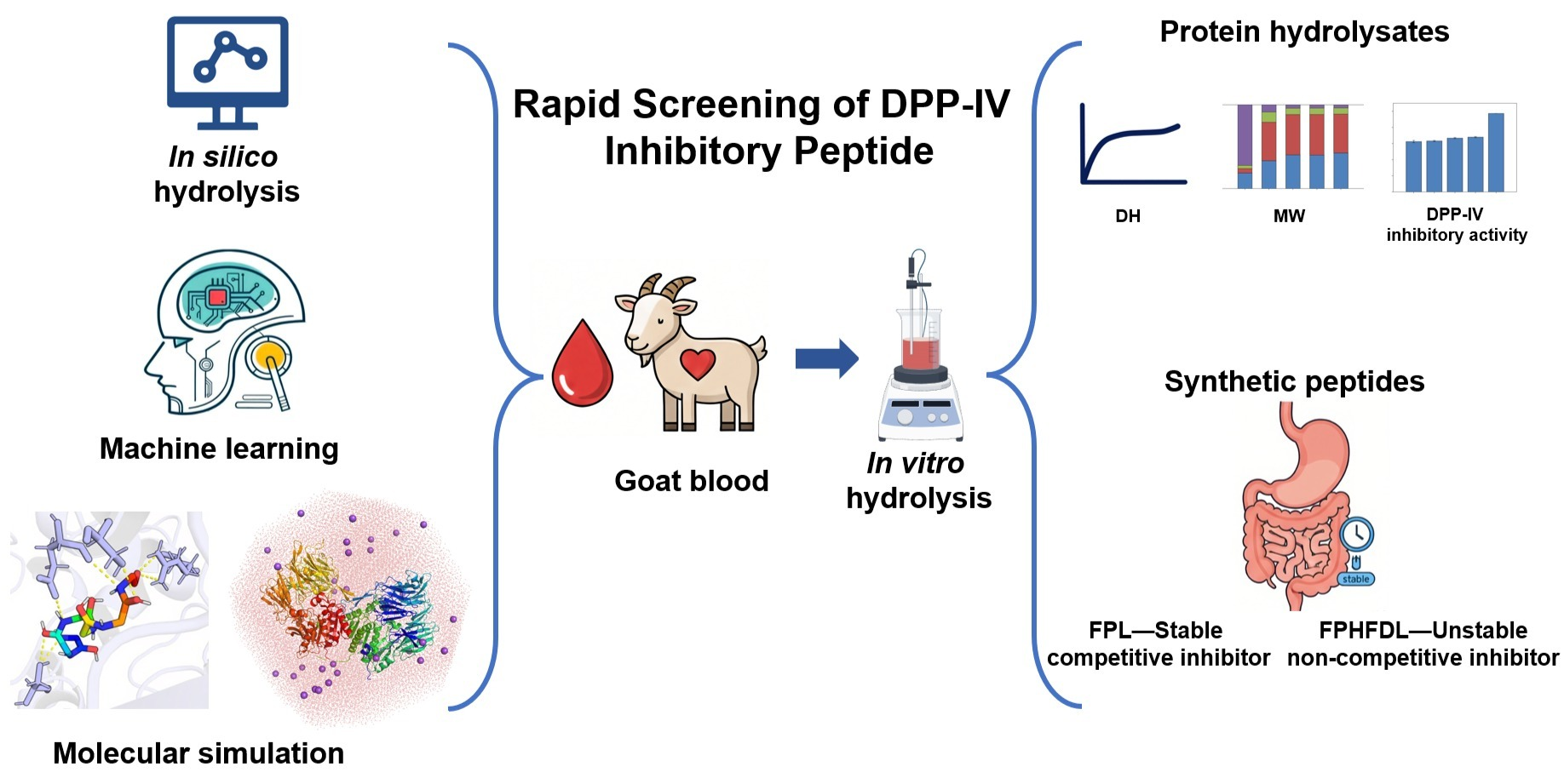 Tan, J.; Huang, S.; Wu, D.; Zhao, Z.; Zhao, Y.; Fu, Y.; Wu, W. AI-Driven Rapid Screening and Characterization of Dipeptidyl Peptidase-IV (DPP-IV) Inhibitory Peptides from Goat Blood Proteins: An Integrative In Silico and Experimental Strategy. Foods 2026, 15, 398. https://doi.org/10.3390/foods15020398