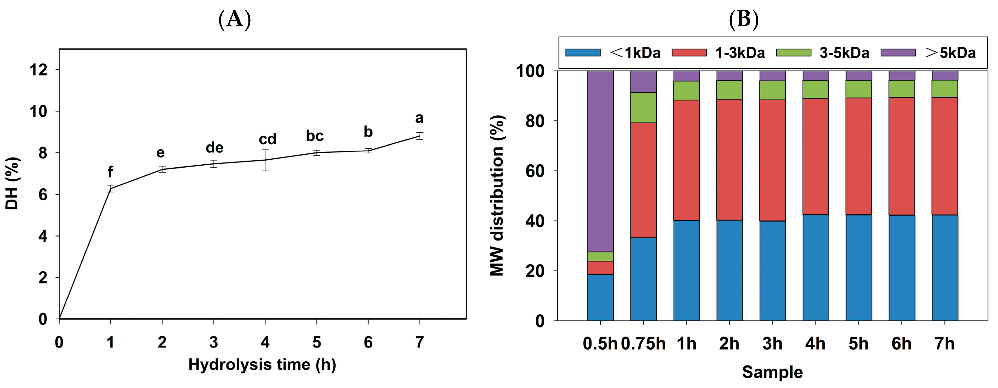 - Zhan, J.; Li, G.; Dang, Y.; Pan, D. Antioxidant Stability of a Novel Peptide from Porcine Plasma Hydrolysates by in Vitro Digestion/HepG-2 Model. Eur. Food Res. Technol. 2022, 248, 797–806. [Google Scholar] [CrossRef]