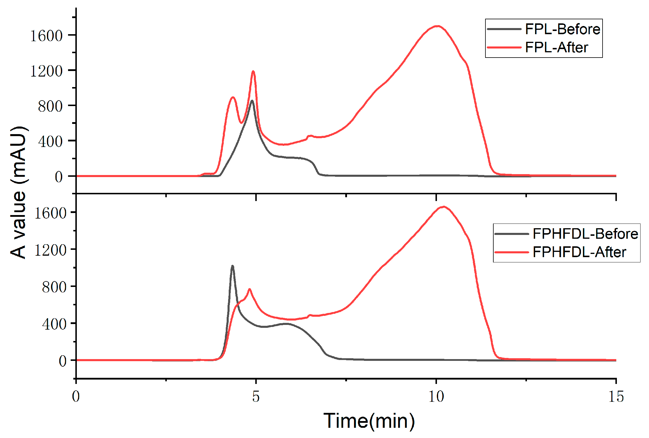 3.2. Determination of DH and Molecular Weight (MW) Distribution