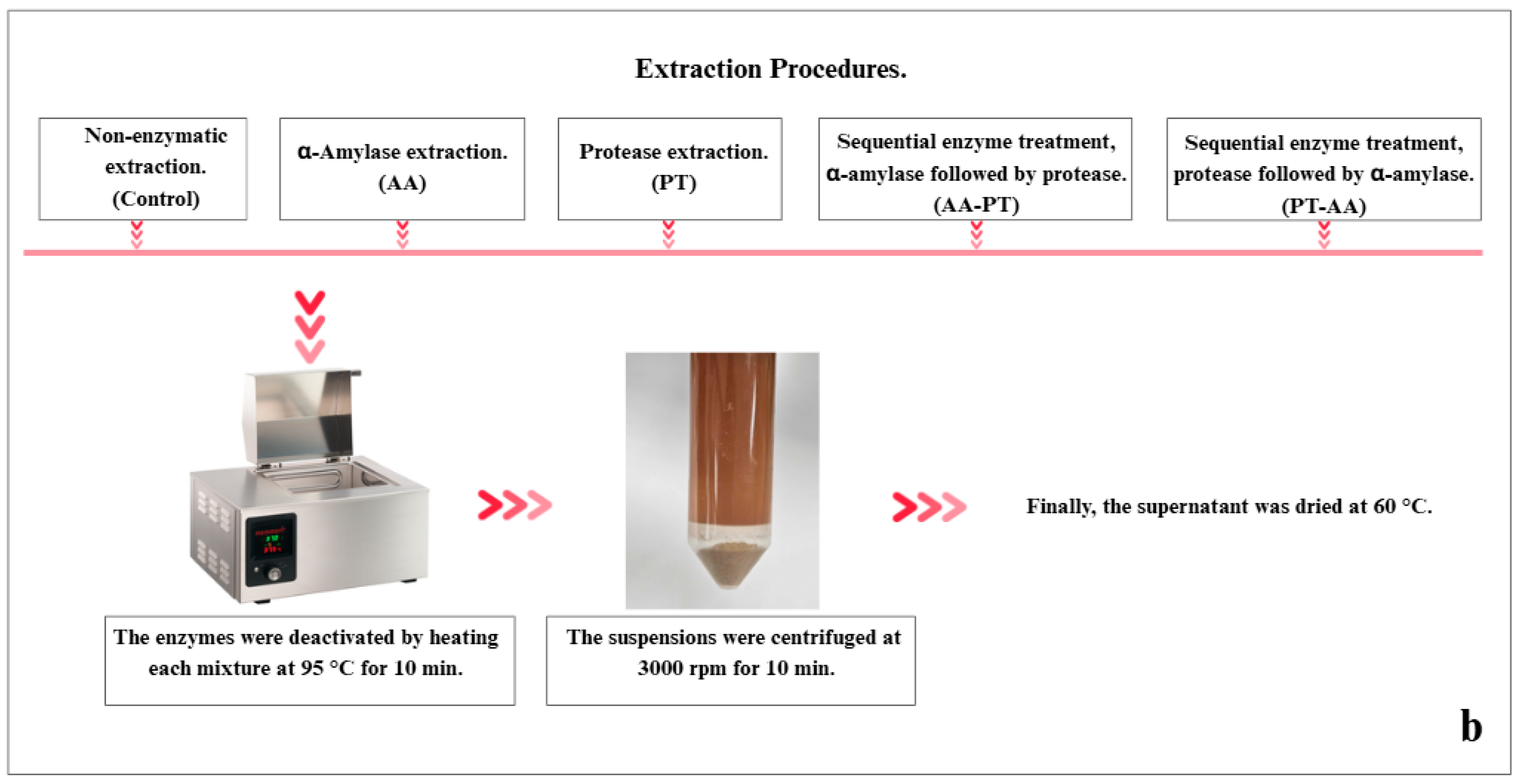 - Braspaiboon, S.; Osiriphun, S.; Peepathum, P.; Jirarattanarangsri, W. Comparison of the Effectiveness of Alkaline and Enzymatic Extraction and the Solubility of Proteins Extracted from Carbohydrate-Digested Rice. Heliyon 2020, 6, e05403. [Google Scholar] [CrossRef]