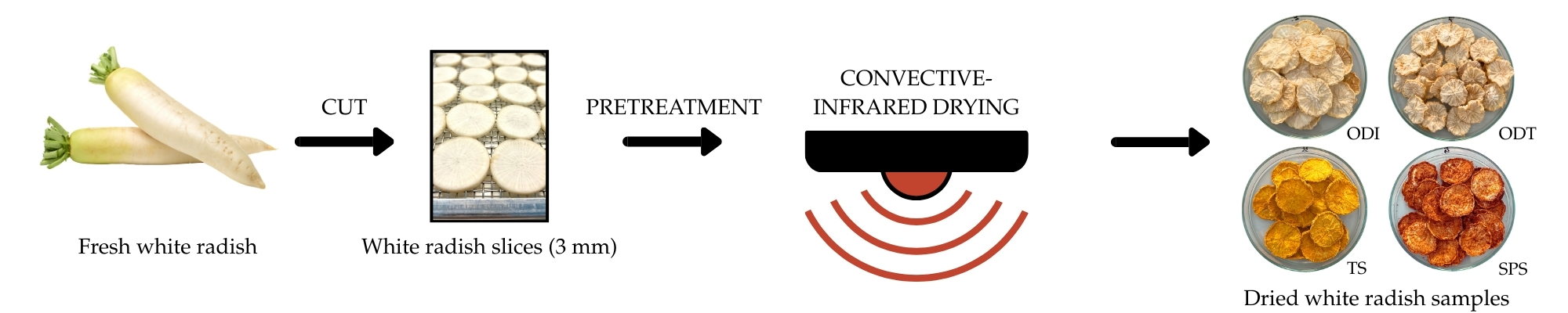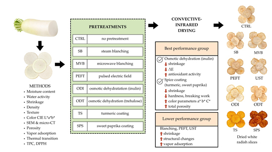 The Effect of Pretreatments and Infrared Drying on the Quality of White Radish Slices