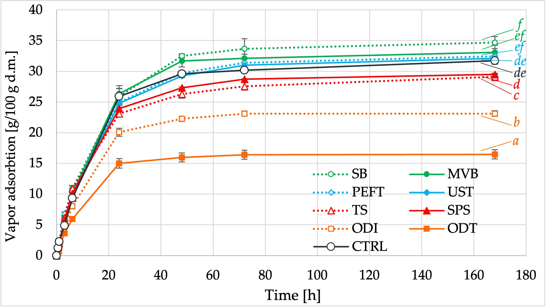 | ODT | 0.234 ± 0.047 ab | 10.87 ± 0.98 b | 41.4 ± 4.3 cd | 1.42 ± 0.02 ac | 22.2 ± 4.6 f | 33.1 ± 6.9 d |