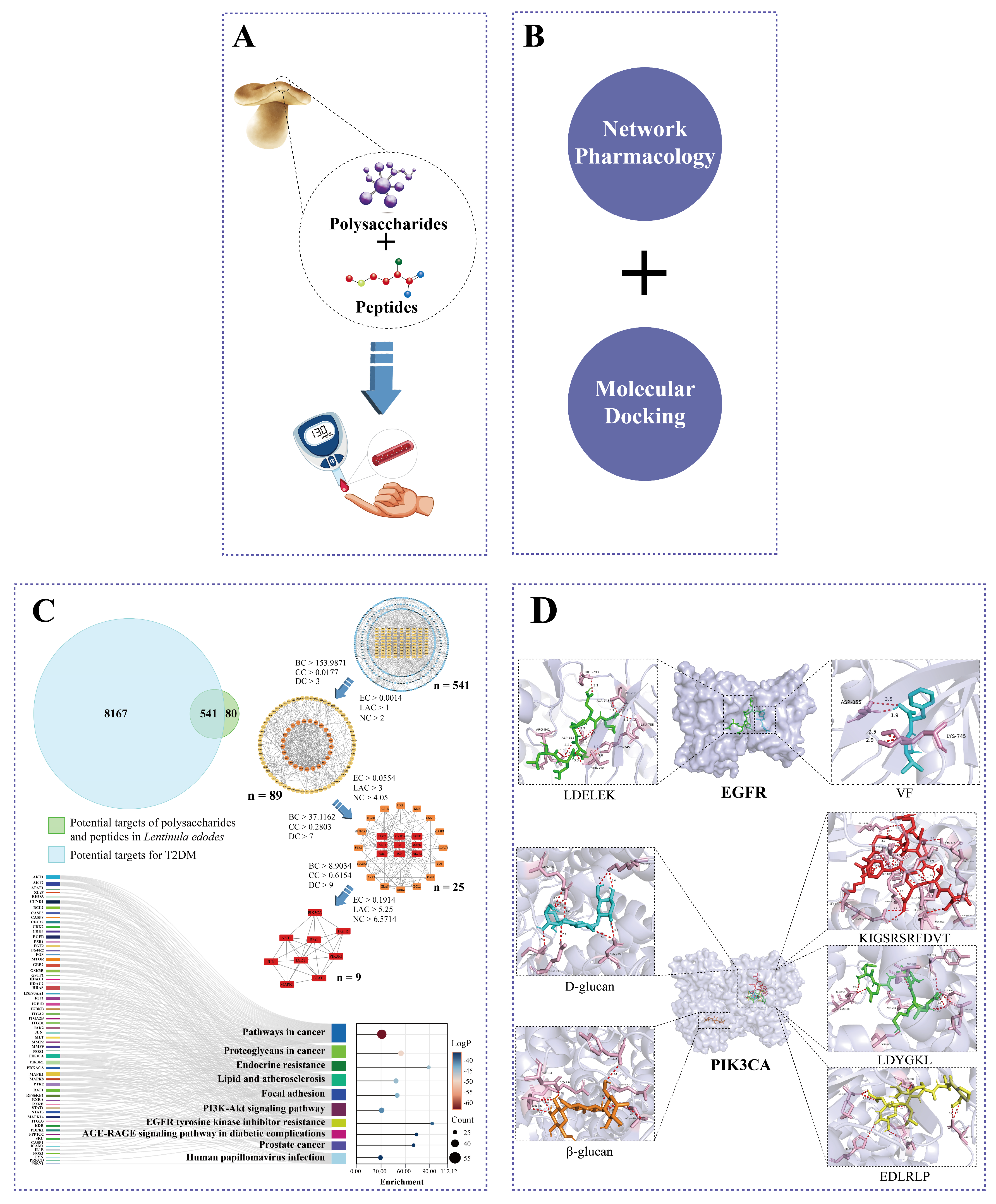 Synergistic Mechanistic Insights into Anti-T2DM Benefits of Lentinula edodes: A Peptide- and Polysaccharide-Based Network Pharmacology and Molecular Docking Study