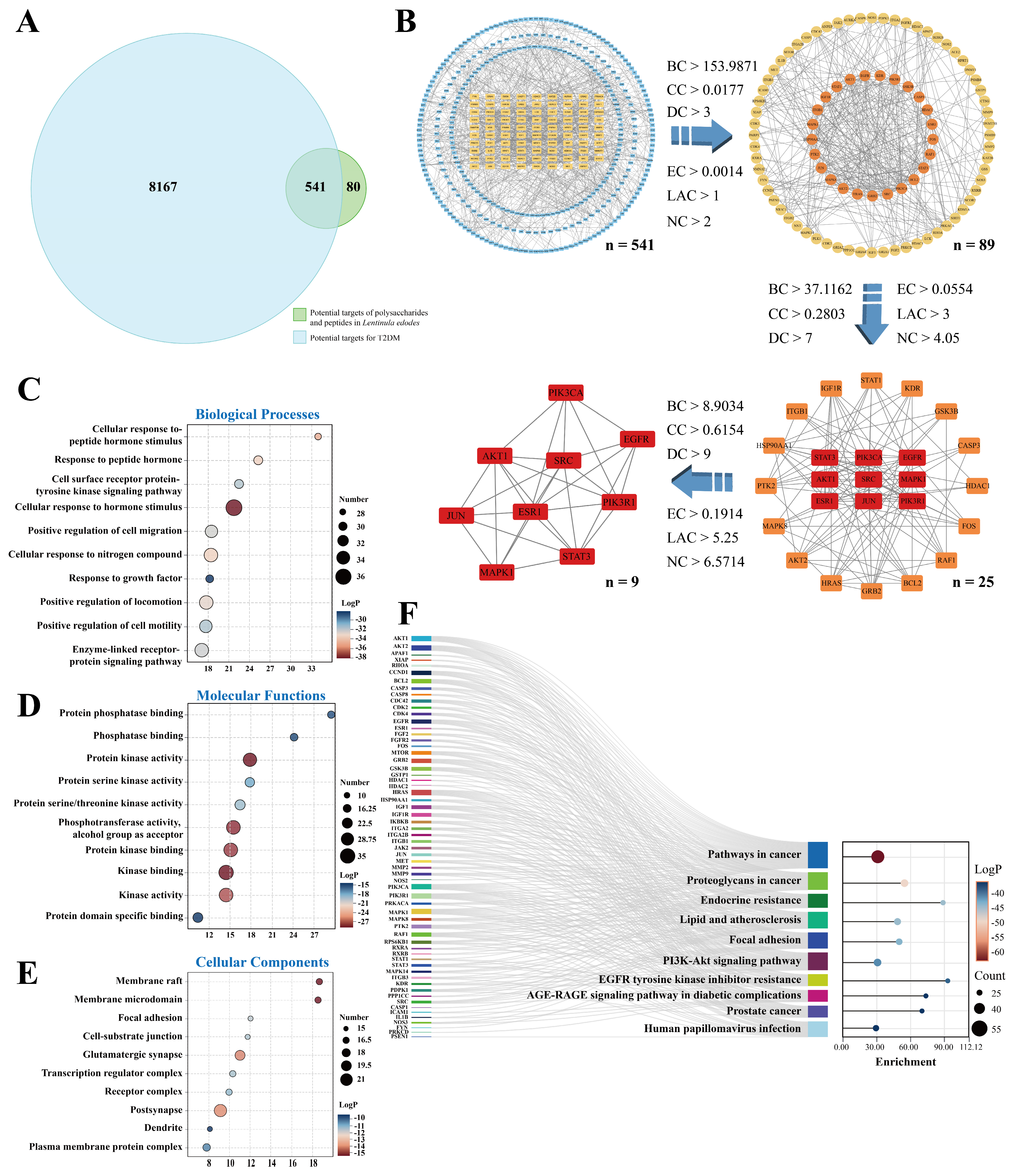 2.2. Predicting Targets of L. edodes Peptides and Polysaccharides