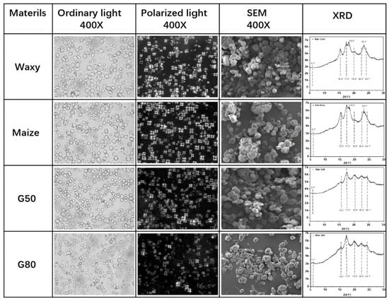 Morphologies of cornstarch with different amylose/amylopectin ratios and their crystal structures detected by XRD [35].