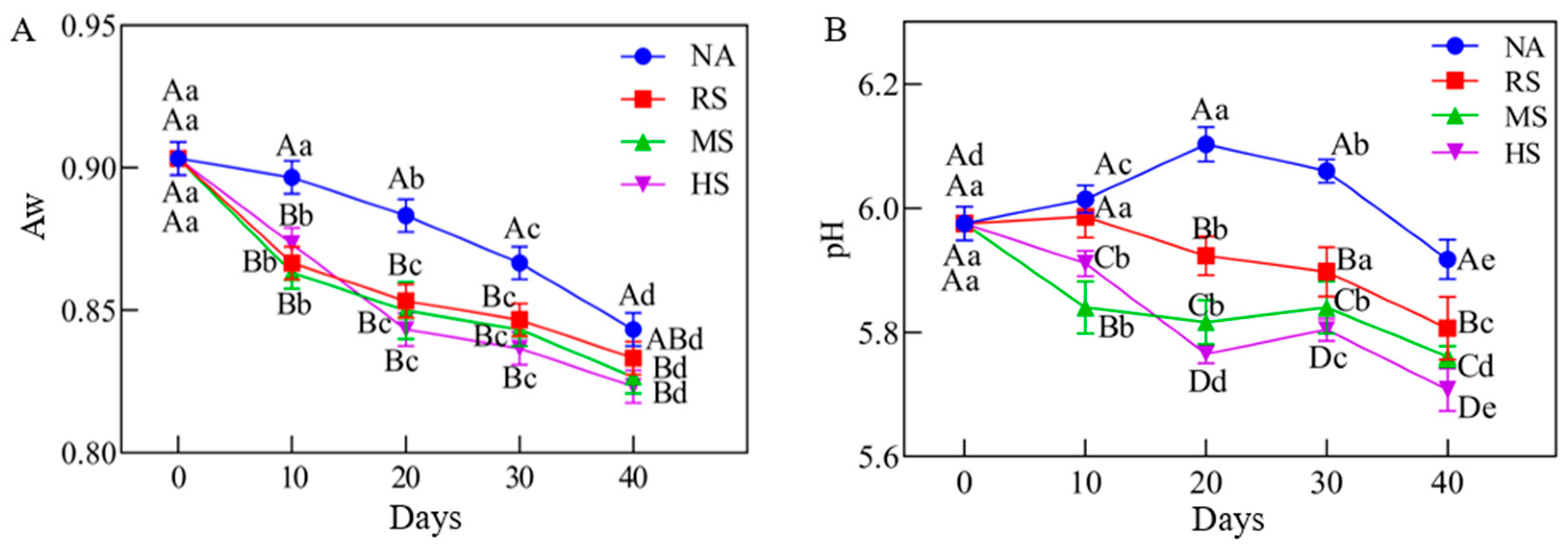 3.1. The Effects of Staphylococcus Inoculation on the Water Activity of Coppa