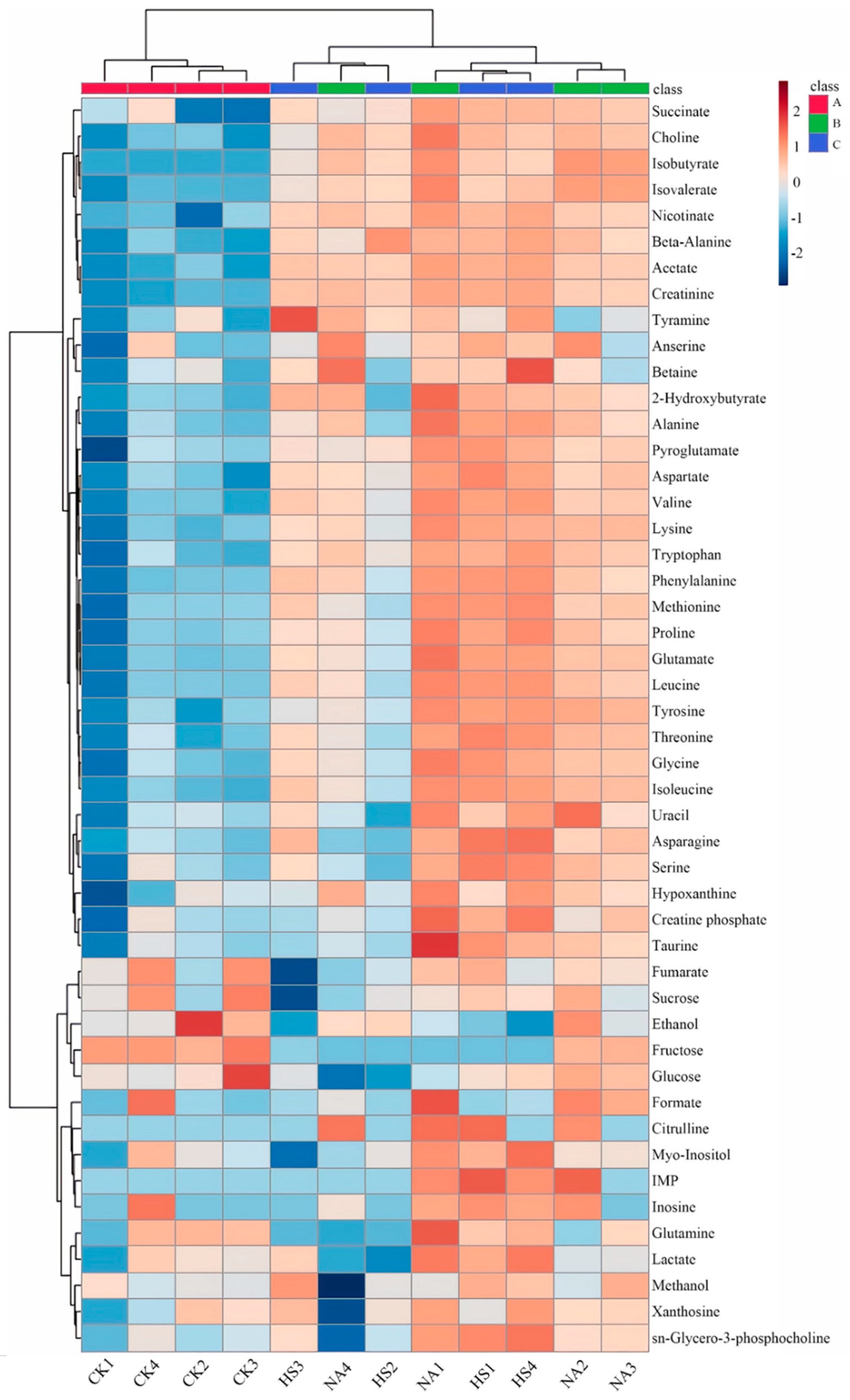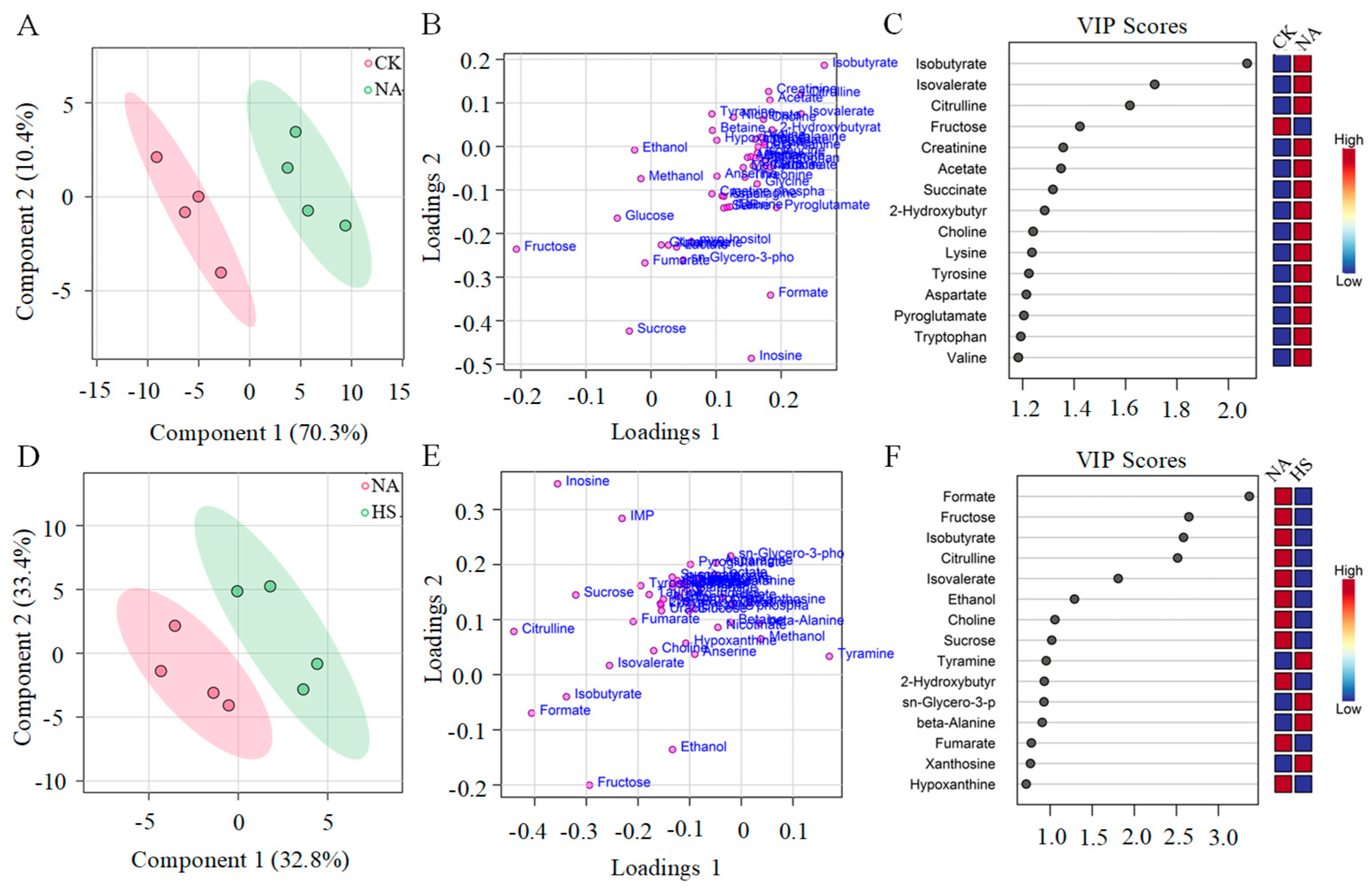 | 2-hydroxybutyric acid | 0.022 ± 0.007 b | 0.152 ± 0.089 a | 0.106 ± 0.058 ab |