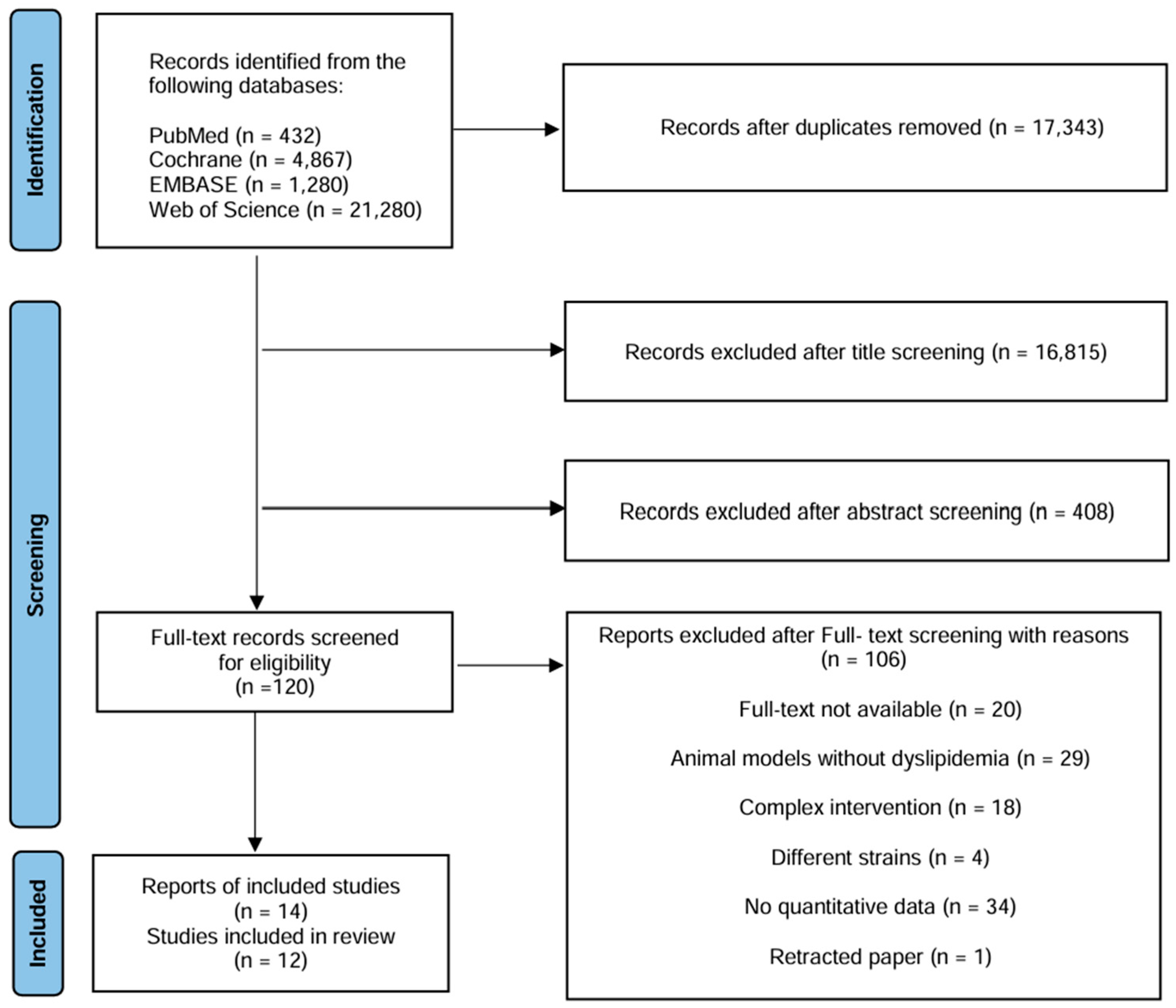 Chicago/Turabian StyleChung, Sungmin, Jiill Jeong, Yeonwoo Park, Bogyeong Lee, Sumin Kang, and Gwang-woong Go. 2026. "Improving Lipid Profiles Through Lactobacillus rhamnosus Supplementation in Dyslipidemic Animal Models: A Systematic Review and Meta-Analysis" Foods 15, no. 3: 465. https://doi.org/10.3390/foods15030465