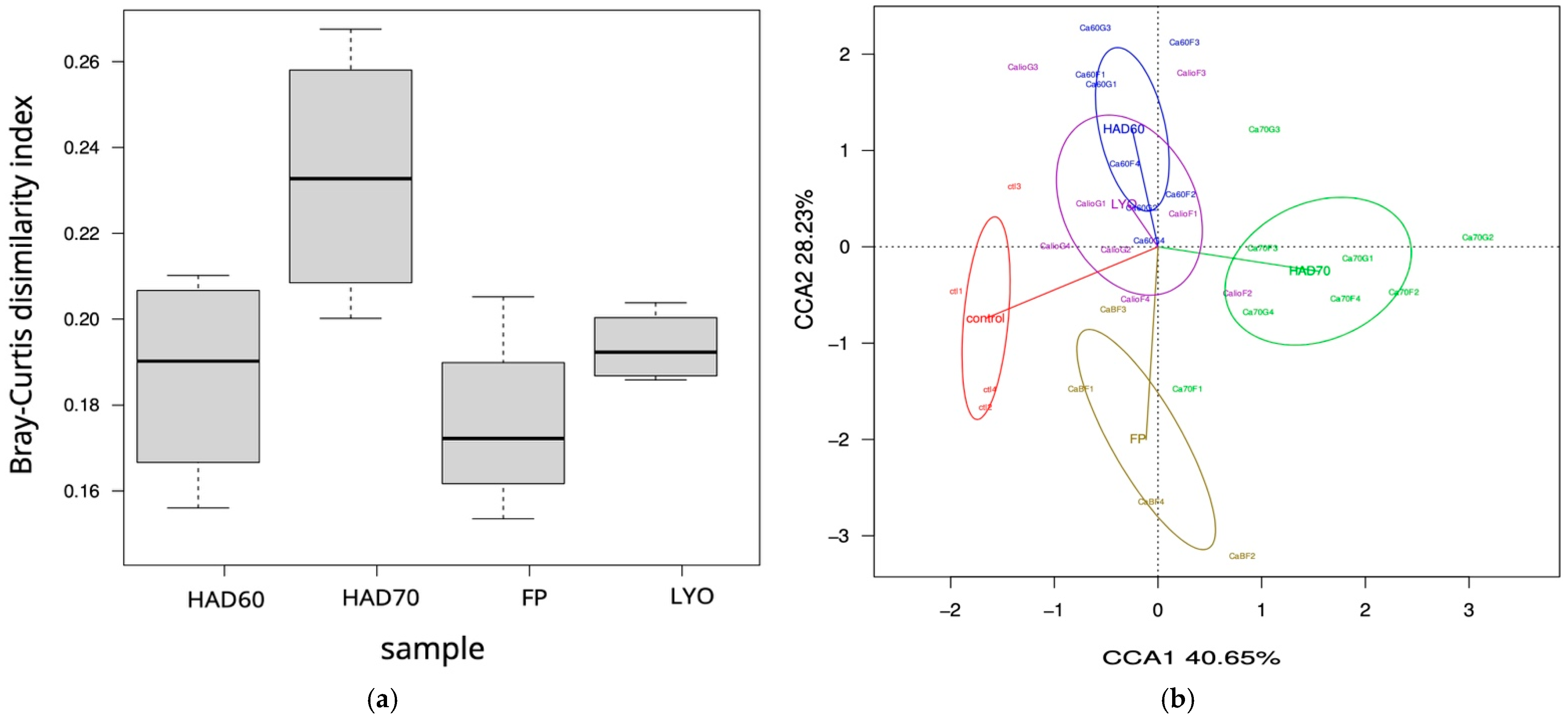 3.3. Effects of the Treatments on the Fermentative Microbiota