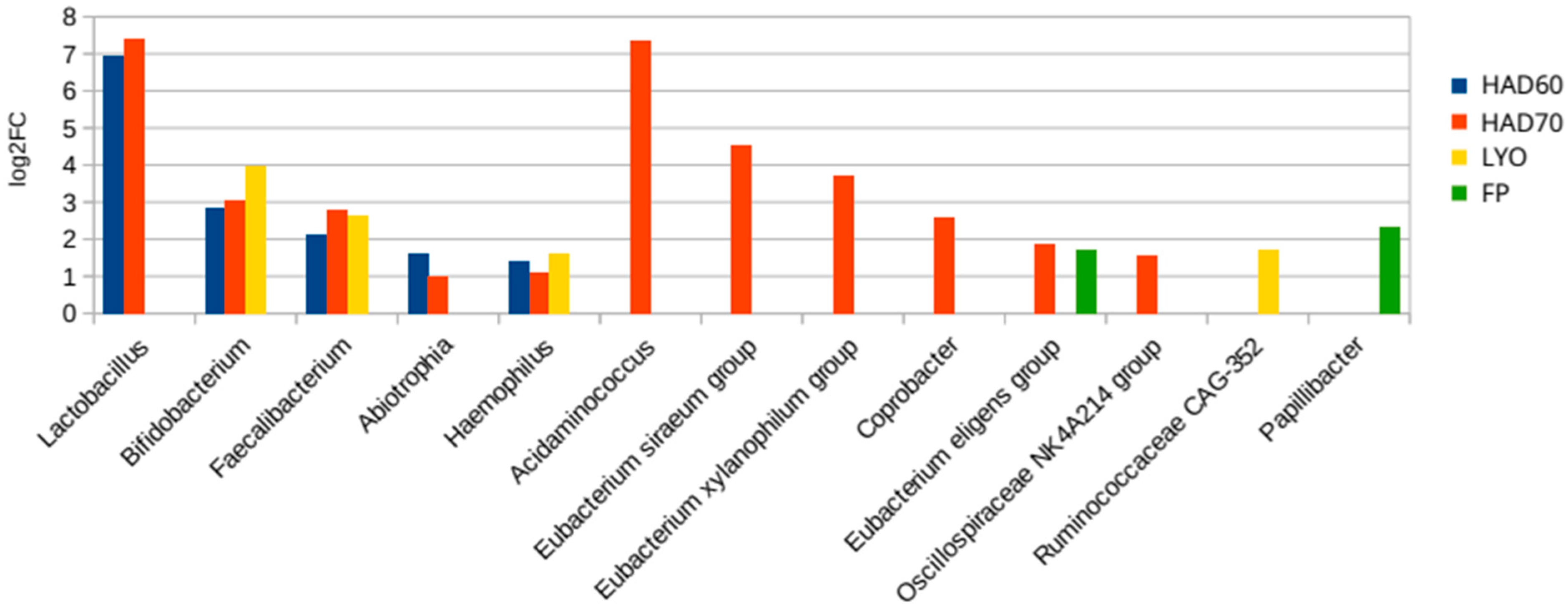 - Martín, R.; Rios-Covian, D.; Huillet, E.; Auger, S.; Khazaal, S.; Bermúdez-Humarán, L.G.; Sokol, H.; Chatel, J.M.; Langella, P. Faecalibacterium: A Bacterial Genus with Promising Human Health Applications. FEMS Microbiol. Rev. 2023, 47, fuad039. [Google Scholar] [CrossRef]