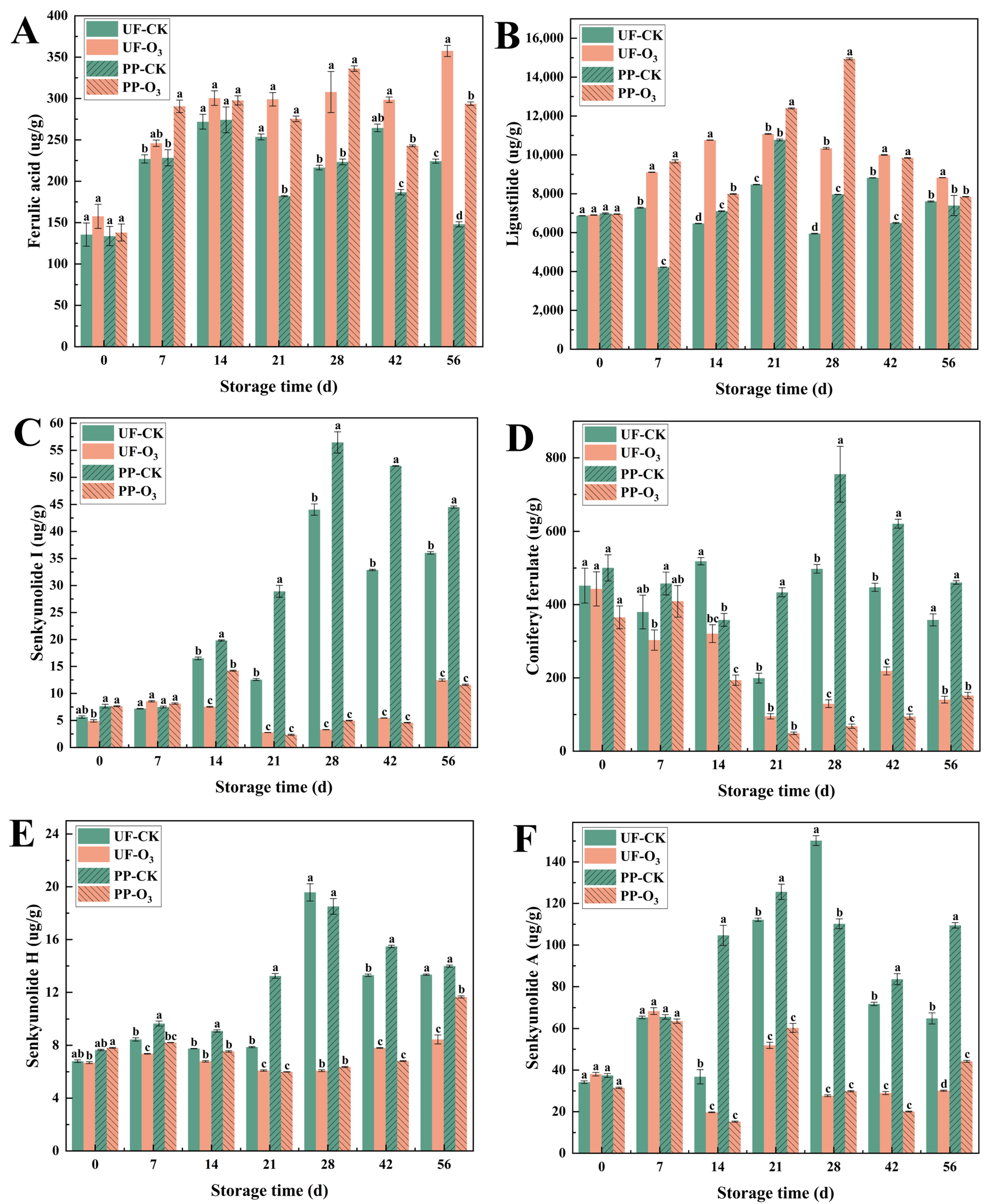 3.1.3. O3 Treatment Maintained the Contents of the Functional Active Ingredients