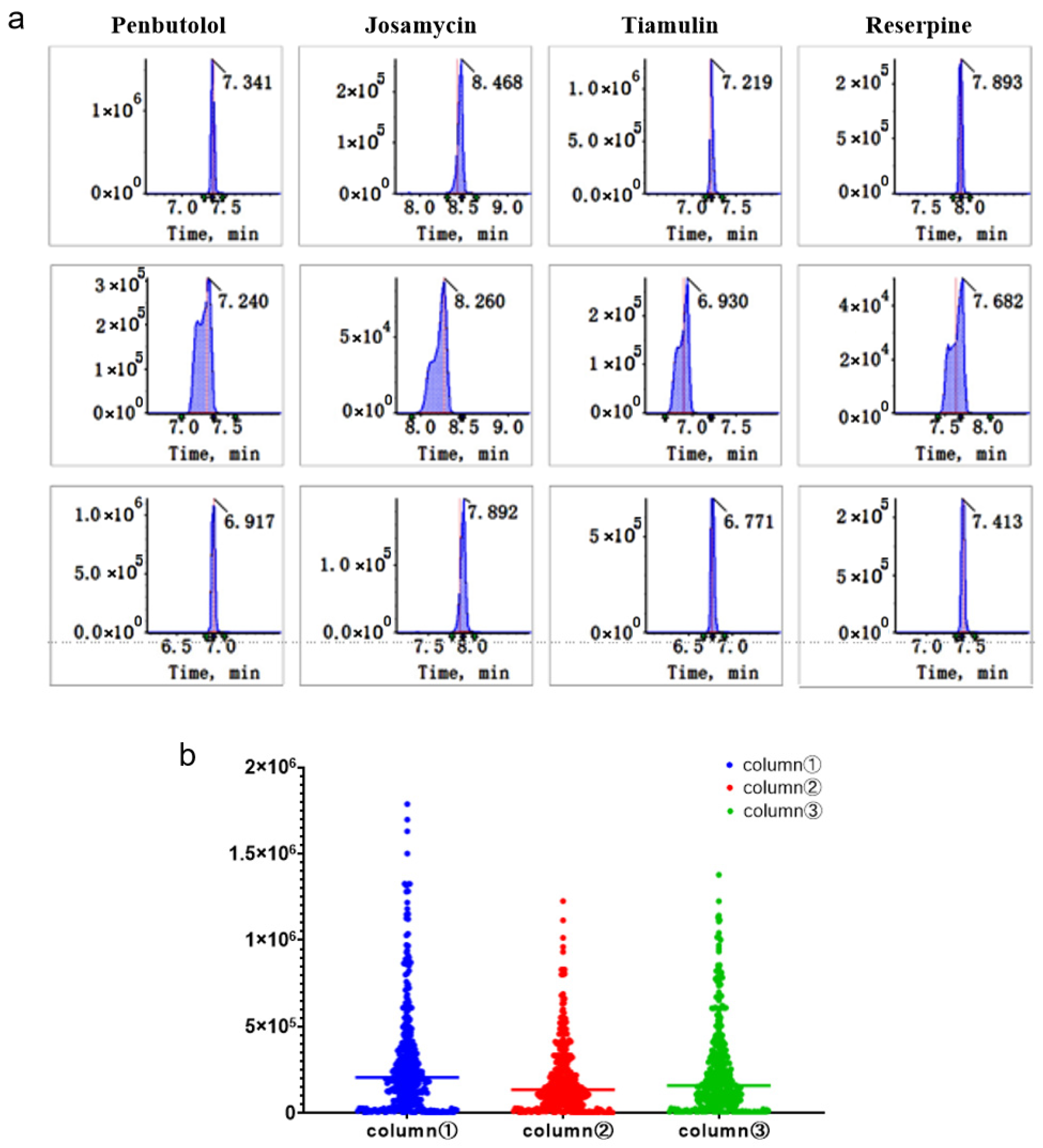 Table S2). The observed retention time shifts for these QC compounds were less than 0.1 min throughout the sequence, demonstrating excellent chromatographic stability.