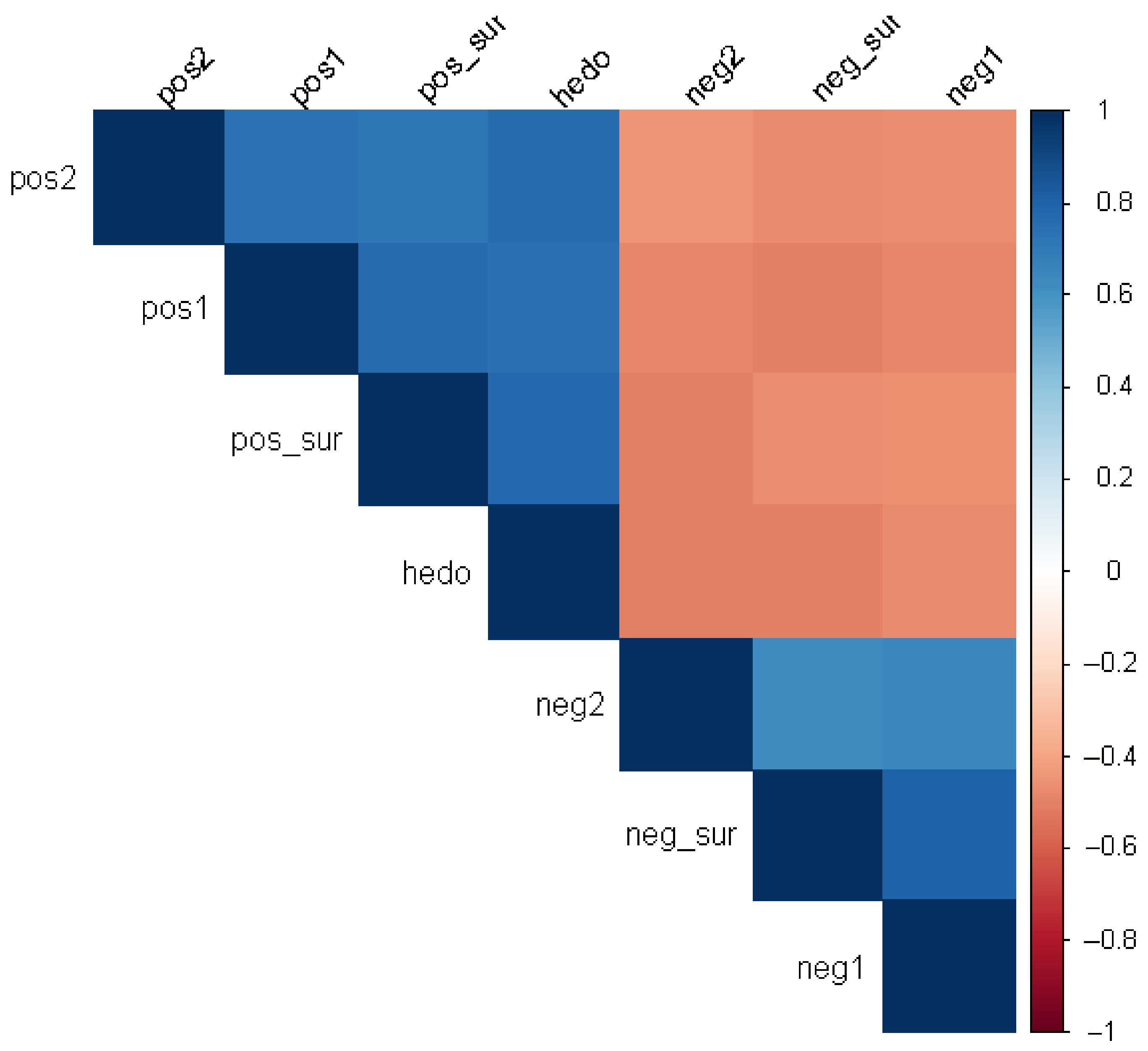 Figure 1. Heatmap of Spearman rho-coefficient for each pair of emotional variables.
