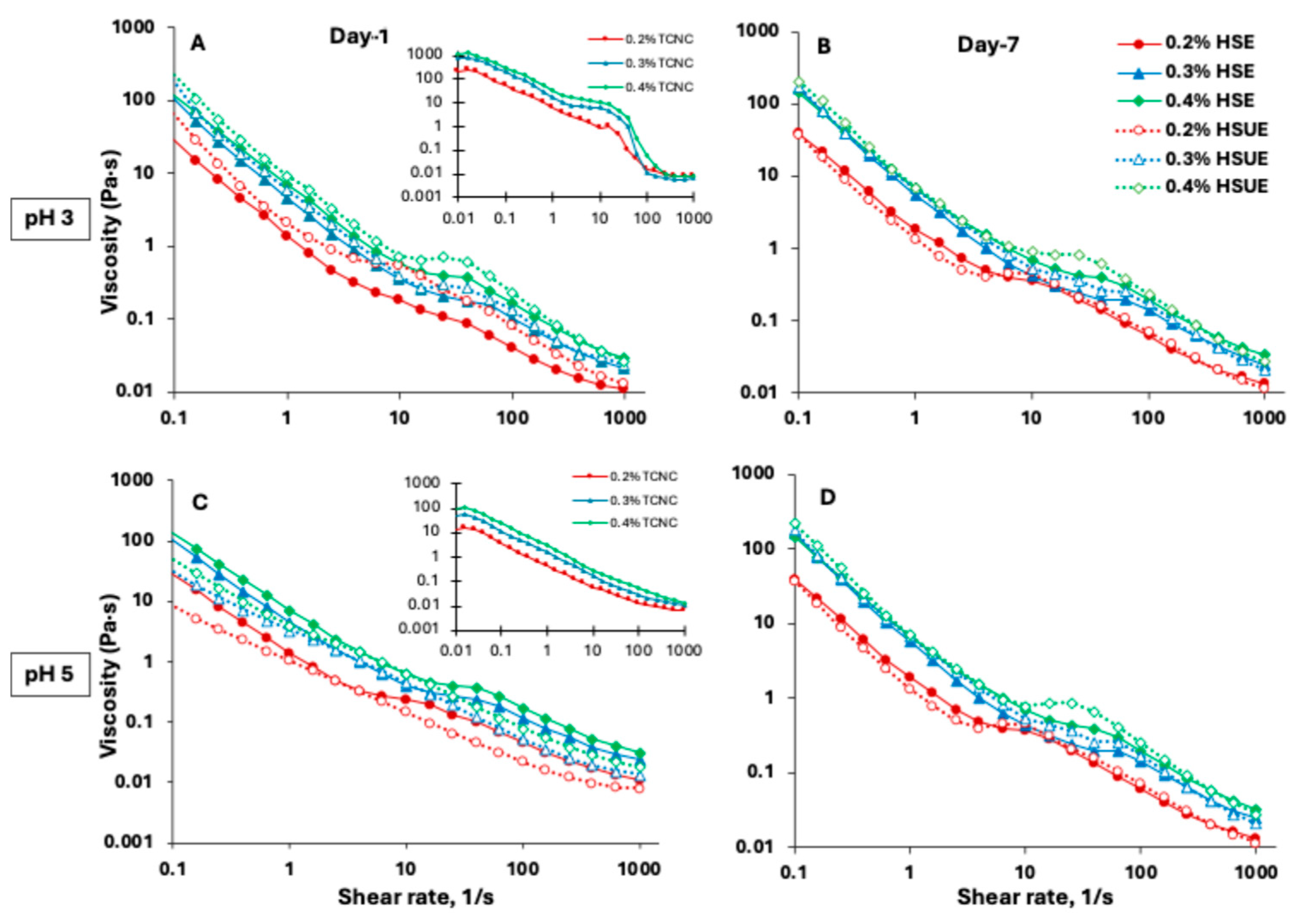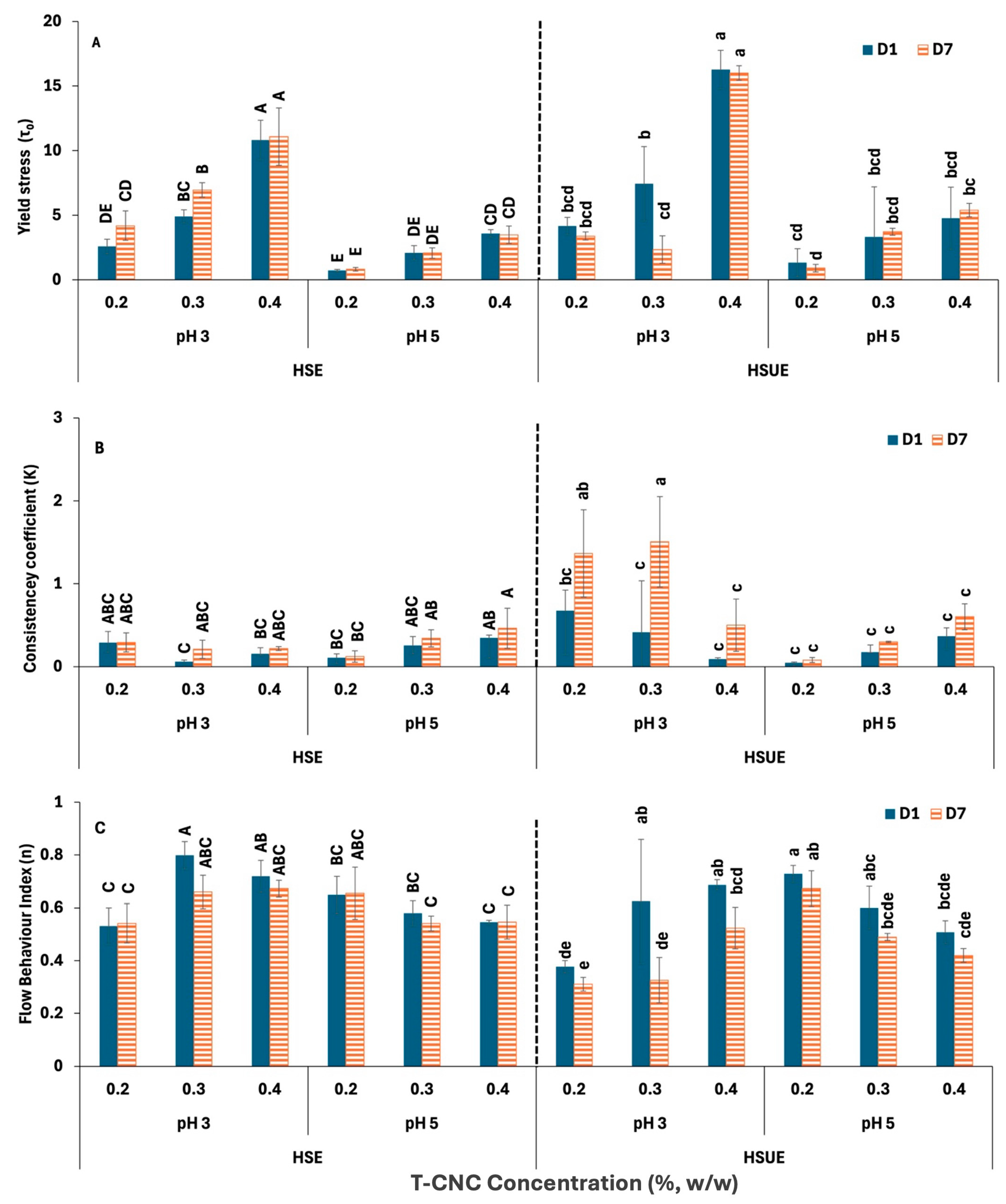 3.2.3. Flow Behaviour of T-CNC-Stabilized PEs