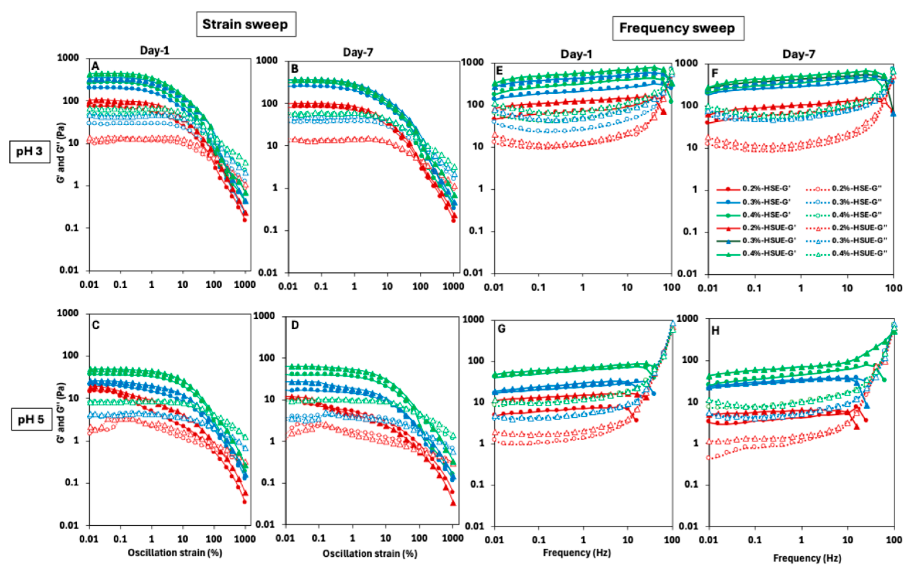 - Różańska, S.; Różański, J.; Wagner, P.; Warmbier-Wytykowska, E. Rheological Properties of Emulsions Stabilized by Cellulose Derivatives with the Addition of Ethyl Alcohol. Materials 2024, 17, 6090. [Google Scholar] [CrossRef]