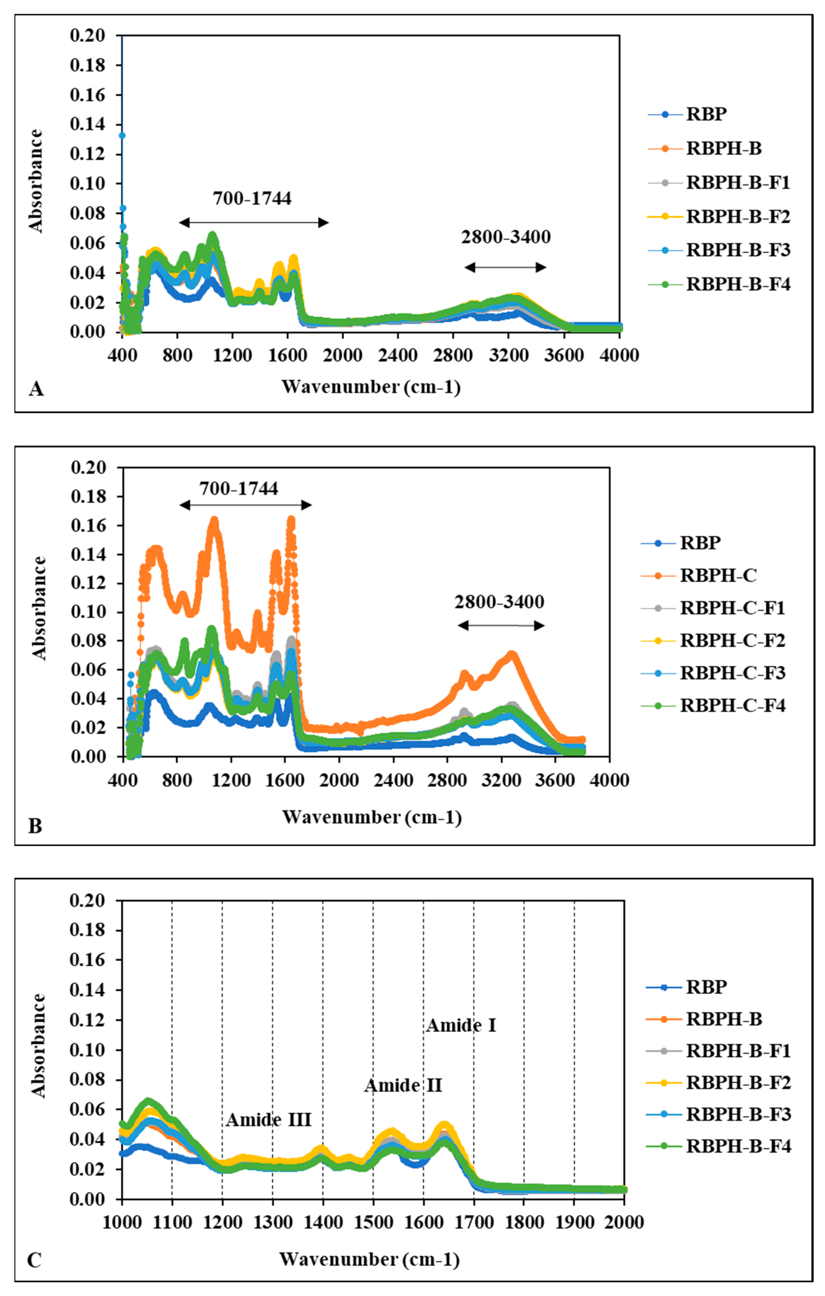 | RBPH-C-F2 | 75.36 ± 0.02 cC | 0.20 ± 0.01 aD | 13.36 ± 0.08 bF | 21.63 ± 0.02 cCD |