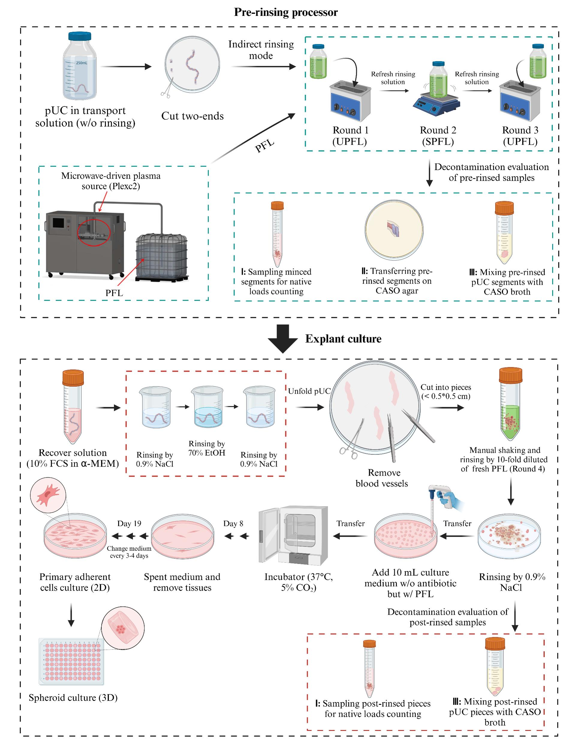 Achieving Lasting Umbilical Cord Decontamination and Sustainable Stem Cell Sourcing by Combining Plasma-Functionalized Liquid and Ultrasound