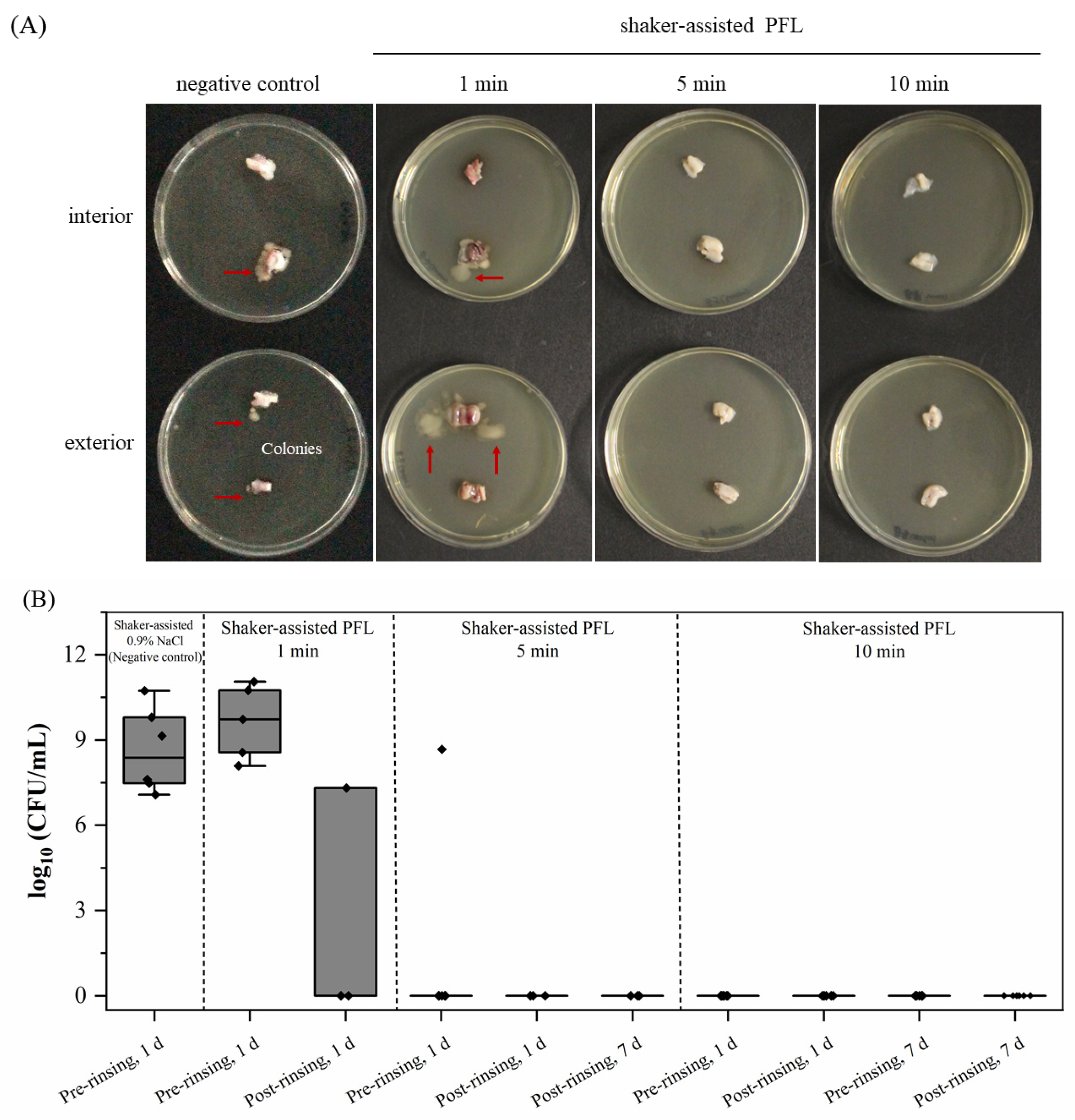 | No | PFL | 100 mL | shaker | 10 min | 3× | 0.9% NaCl (4h) | Yes | 10-fold dilution of stock PFL | 20 mL | 1× | ||