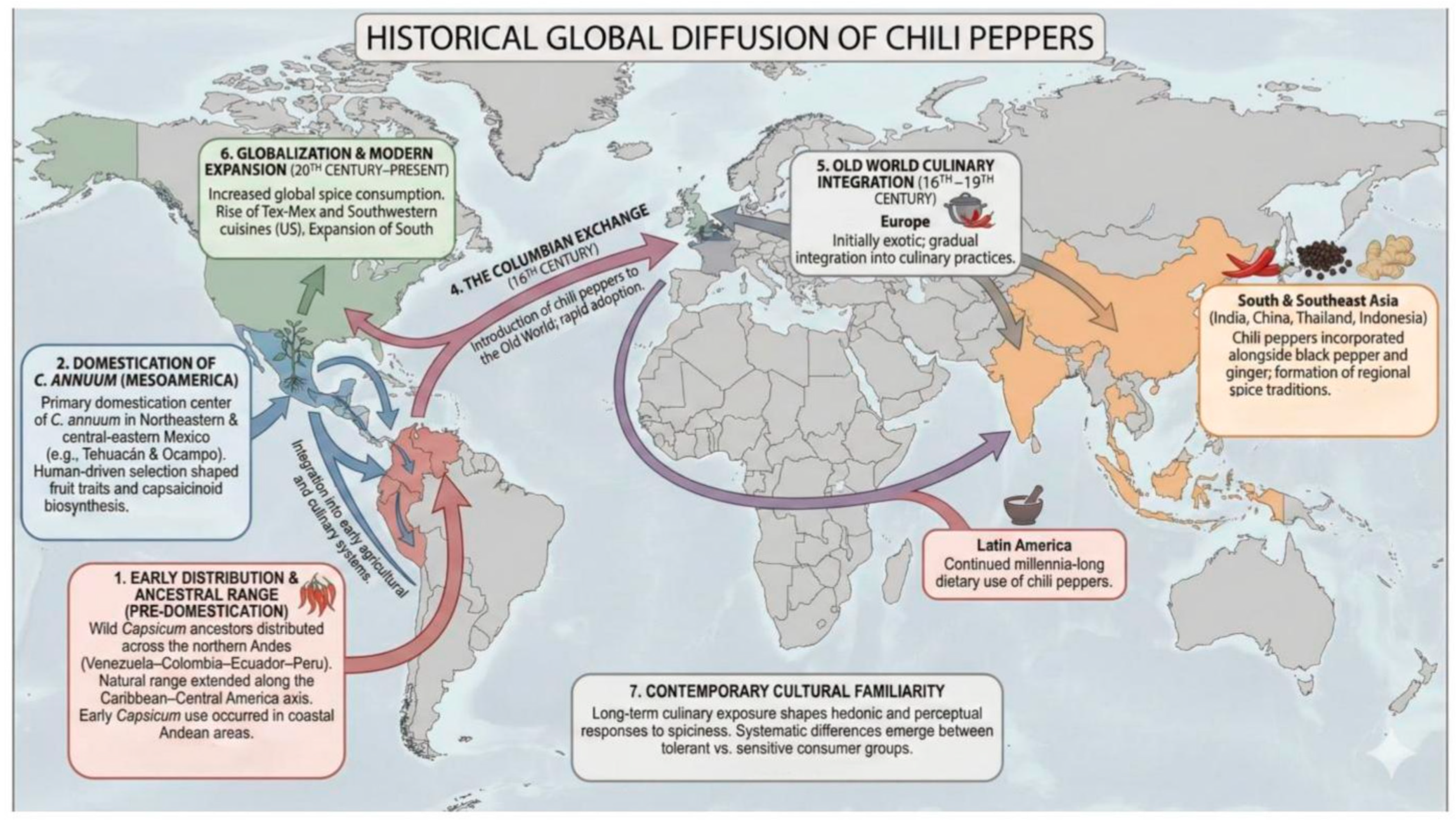 2.1. The History of Chili Pepper Consumption