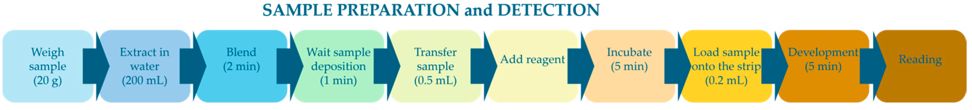 https://www.safefood.it/#alfa-nano, accessed on 22 January 2026). The platform, currently used for automated aflatoxin analysis via lateral flow tests, was slightly adapted for the analysis of glyphosate. Specifically, twenty grams of sample was weighed into a tube extraction, and the ALFA NANO system automatically performed the extraction and analysis according to the workflow shown in