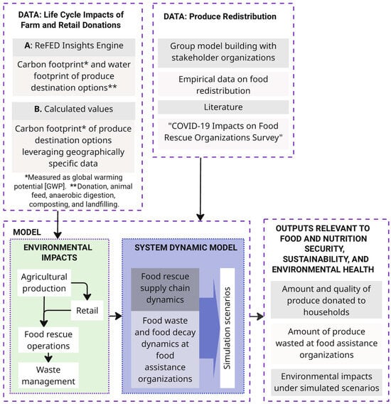 This study builds on the complexity of food system shocks by simulating the combined effect of redistribution policies during crisis conditions. The model revealed how coordinated interventions can influence key outcomes such as food donations, waste reduction, and environmental emissions. By incorporating aspects of food perishability—including shelf-life, non-linear decay dynamics, and waste rates—alongside distribution times, organizational capacity, and shifting demand, it captured time-sensitive dynamics that influence system performance under stress. Developed in collaboration with community partners, the model reflects the lived realities of food rescue operations and is grounded in both academic insight and practical expertise. It also draws on diverse and complementary data sources—including ReFED, life cycle assessment data, and empirical evidence from food redistribution efforts—which enabled context-specific assumptions and enhanced the model’s relevance to real-world planning and policy design.