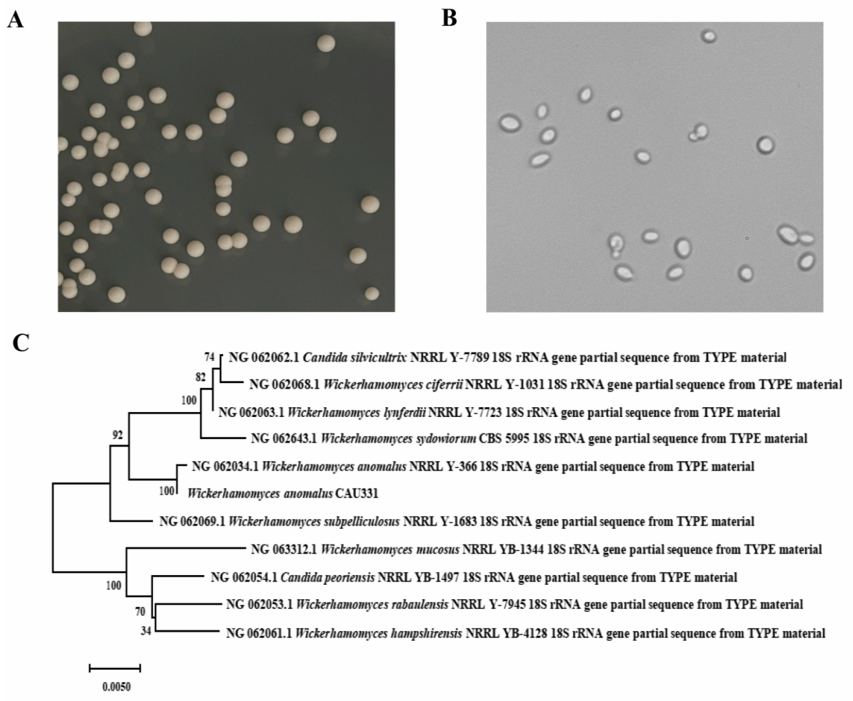 3.1. Isolation and Identification of Yeast for Purification of Crude FOS Syrup