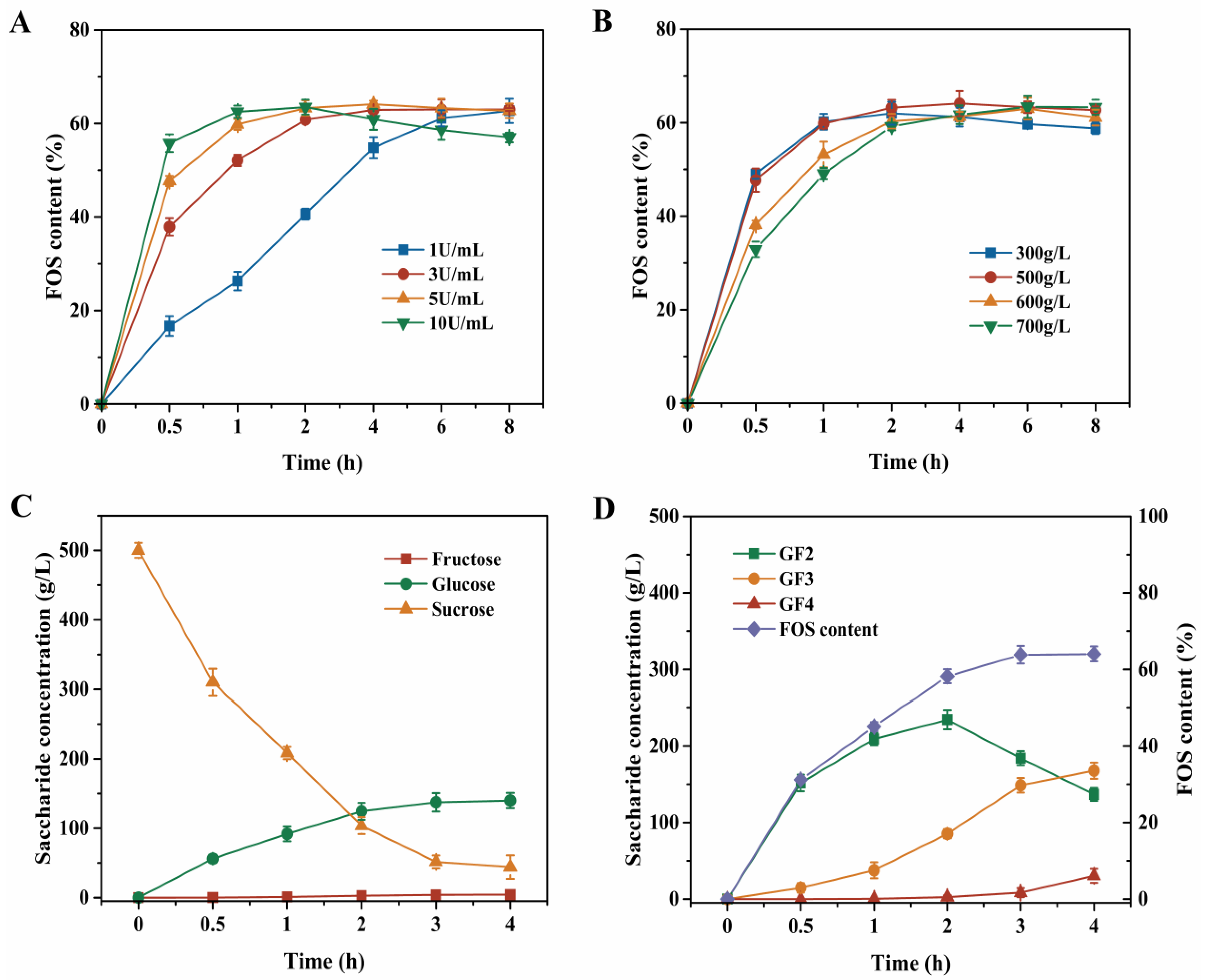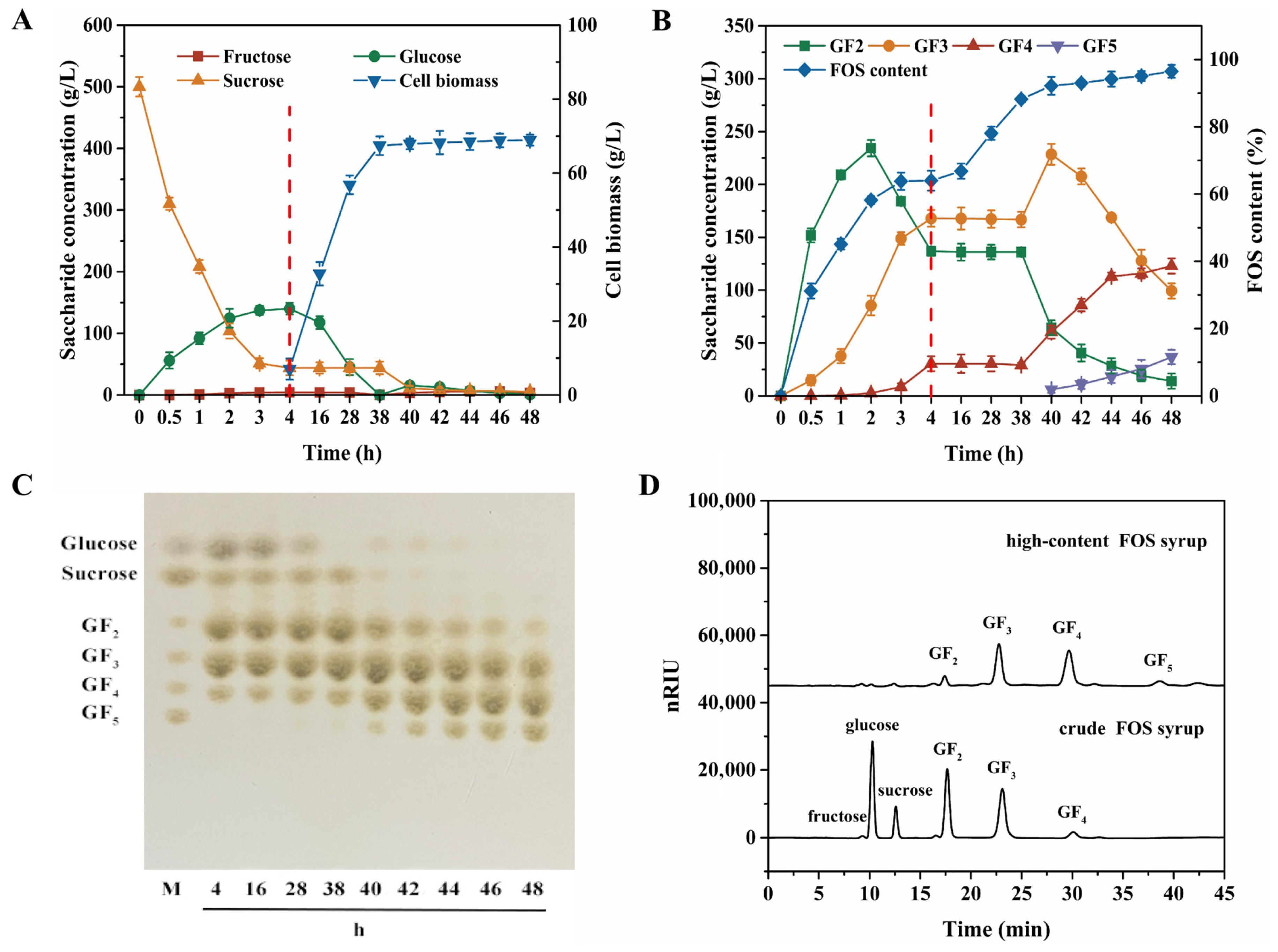 2.5. Production Strategy of High-Content FOS Syrup