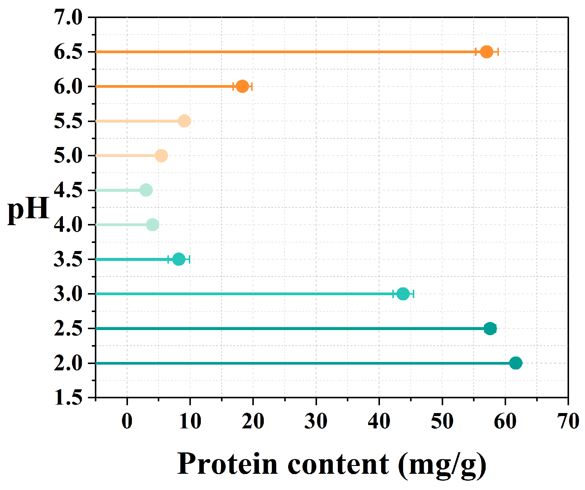 2.2. Determination of the Isoelectric Point of Safflower Seed Meal Protein Isolate (SMP)